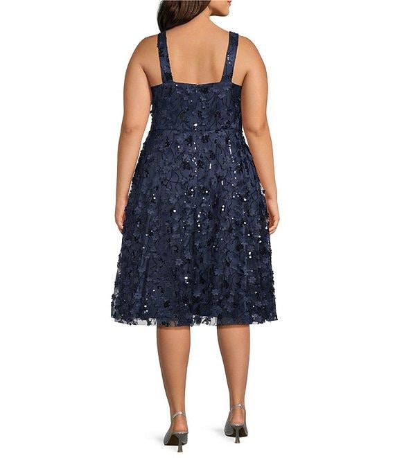 Livia Jolie by Le Bos Plus Size V-Neck Sleeveless 3D Floral Applique with Sequin A-Line Midi Dress