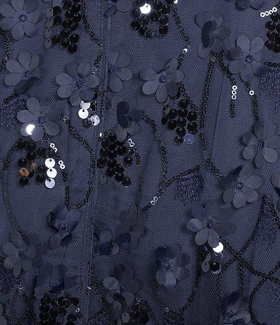 From Les Bos Plus, this dress features: Mesh and sequin fabrication A-line silhouette V-neckline Sleeveless Lined 3D floral applique Zipper back closure Approx. 45.5" in length Polyester Hand wash Imported.