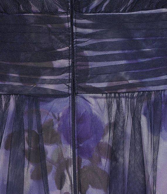 From Liva Jolie by Le Bos Plus, this gown features: Mesh/charmeuse fabrication V-neckline Sleeveless A-line silhouette Lined Pockets Print Zip back closure Approx. 52.5" in center back length Polyester/spandex Hand wash Imported.