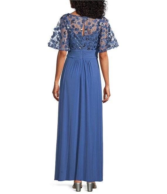 Livia Jolie by Le Bos Short Sleeve Illusion Crew Neck 3D Mesh Floral Embroidered Mesh Maxi Dress