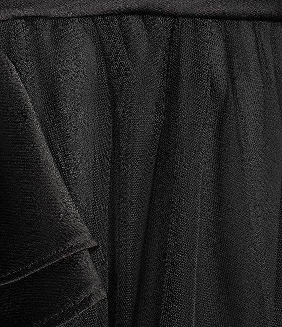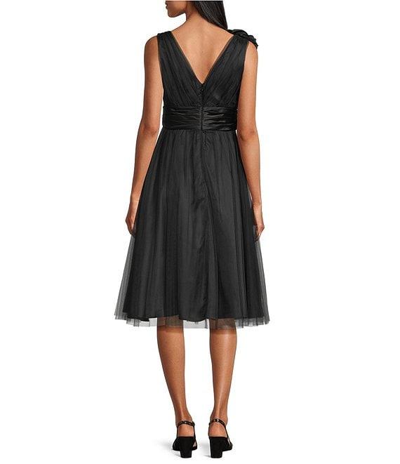 Livia Jolie by Le Bos Sleeveless Mesh Satin V-Neck Rosette Trim A-Line Midi Dress