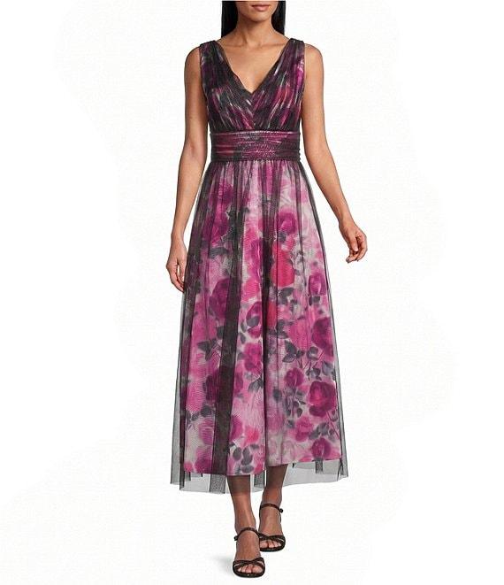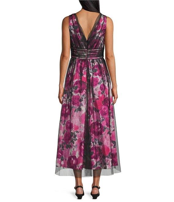 From Liva Jolie by Le Bos, this gown features: Mesh/charmeuse fabrication V-neckline Sleeveless A-line silhouette Lined Pockets Print Zip back closure Approx. 52.5" in center back length Polyester/spandex Hand wash Imported.