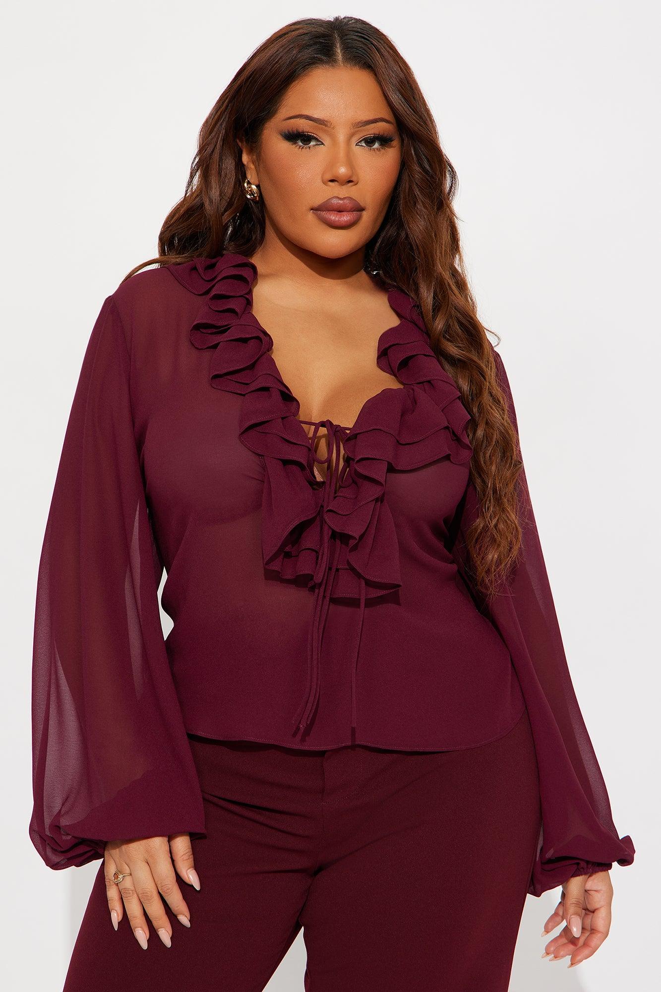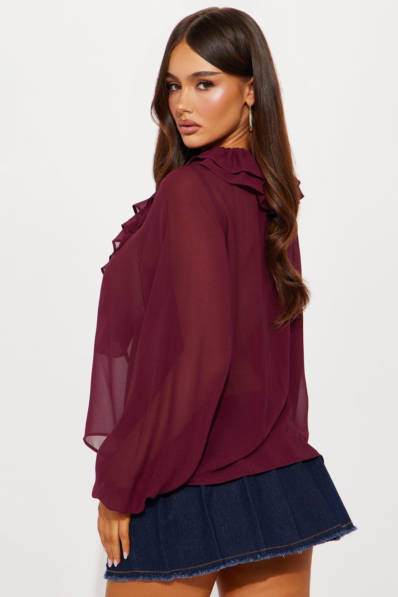 Living For This Ruffle Chiffon Blouse - Burgundy Female