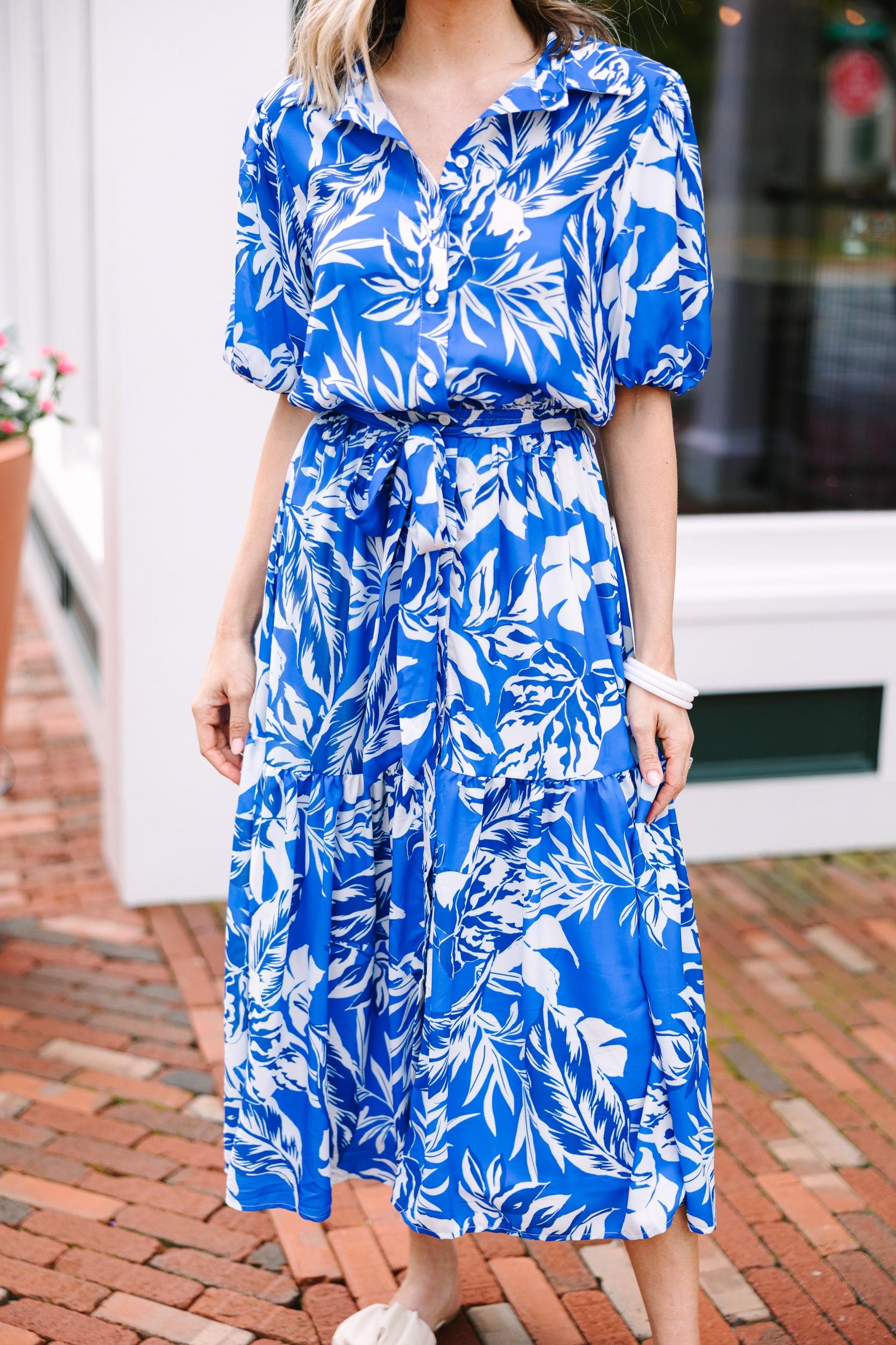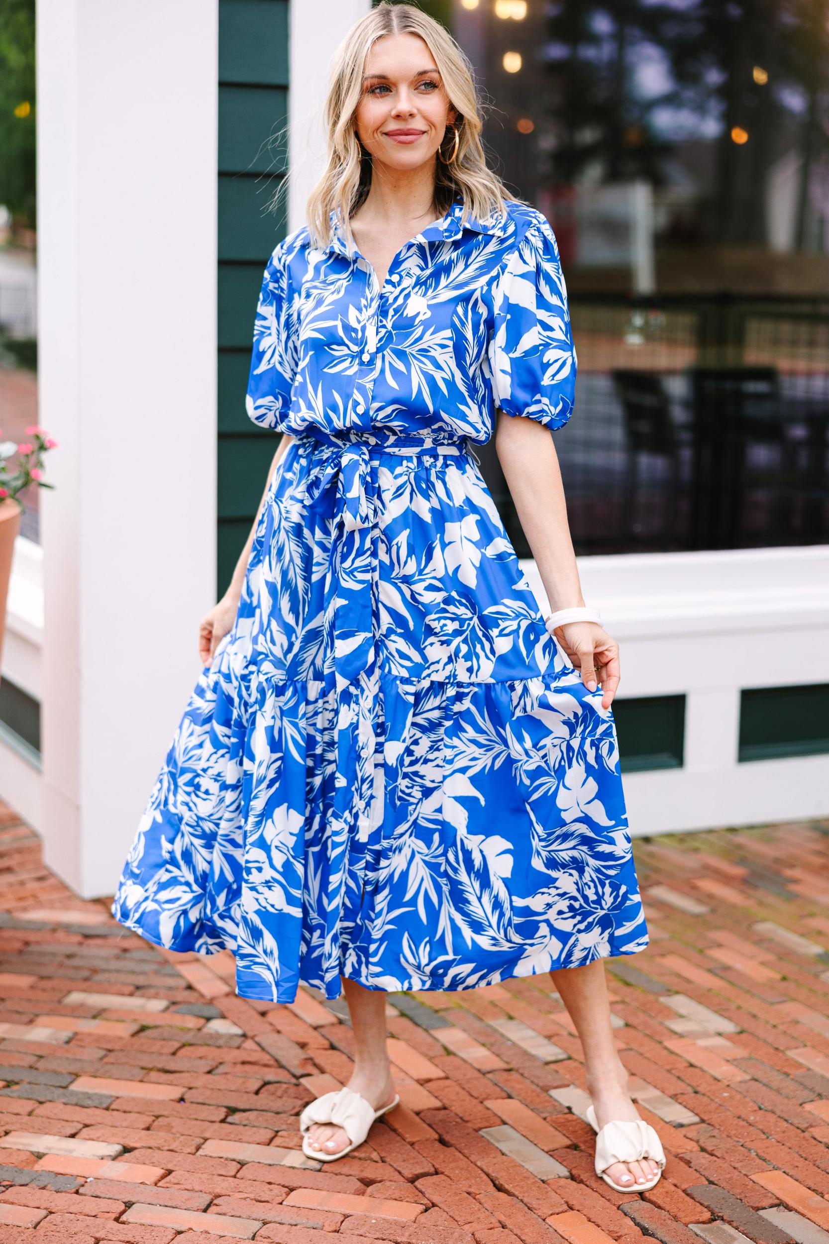 This vibrant beauty is just what you need this summer! It's perfect for summer date nights, parties, or brunch! This midi dress is also going to look great for Memorial day or the 4th of July! This midi dress features short puff sleeves, a tropical floral print, a button down front closure, collared neckline, and an elastic waist with tied detail. Material has no amount of stretch.Cam is wearing the small.