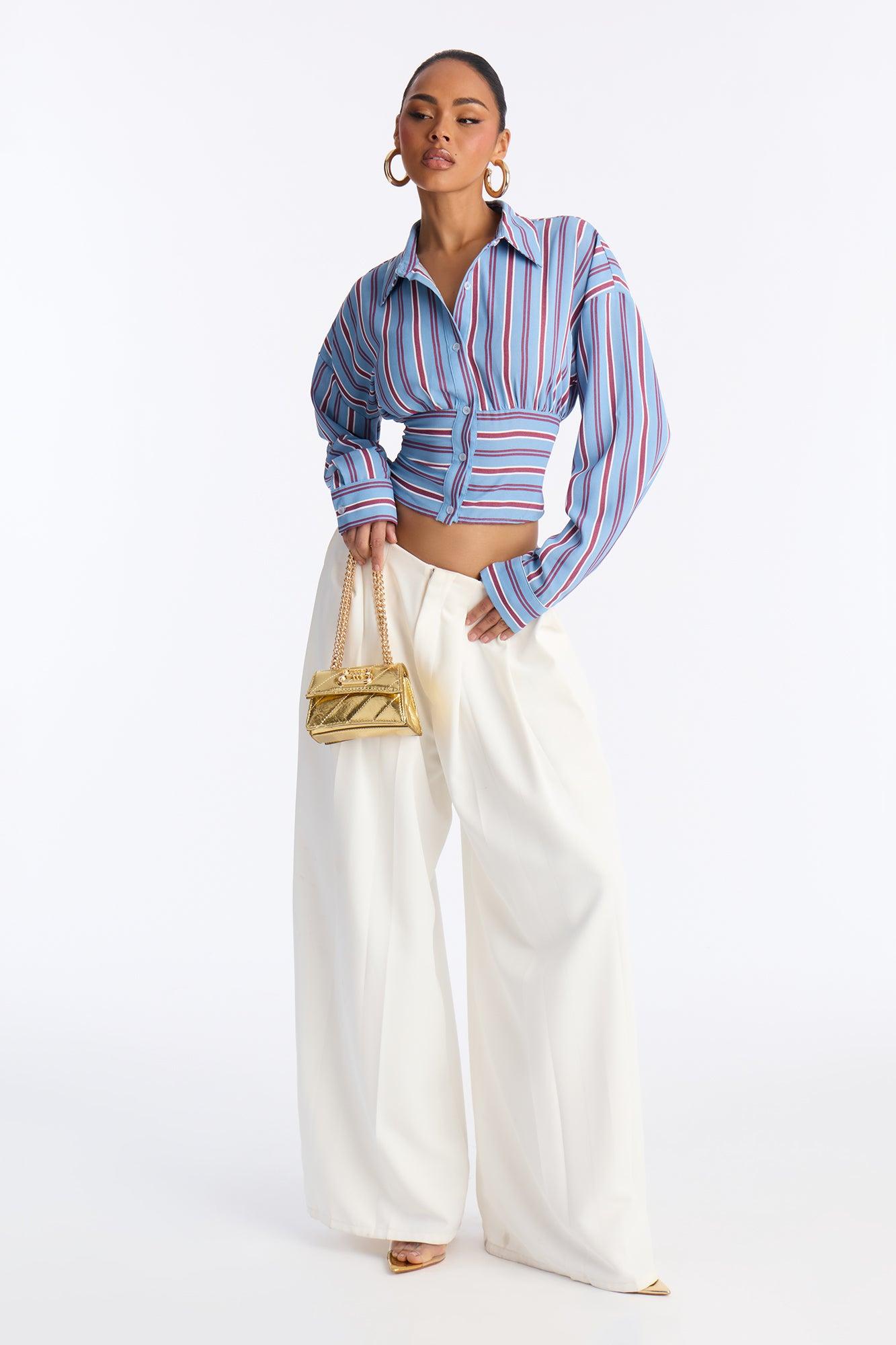 Living In Stripes Cropped Shirt - Blue/combo Female