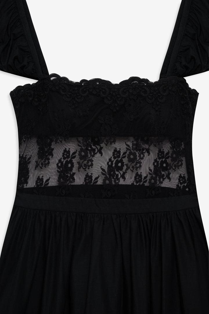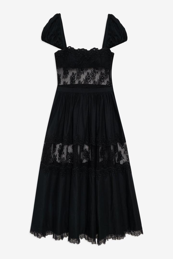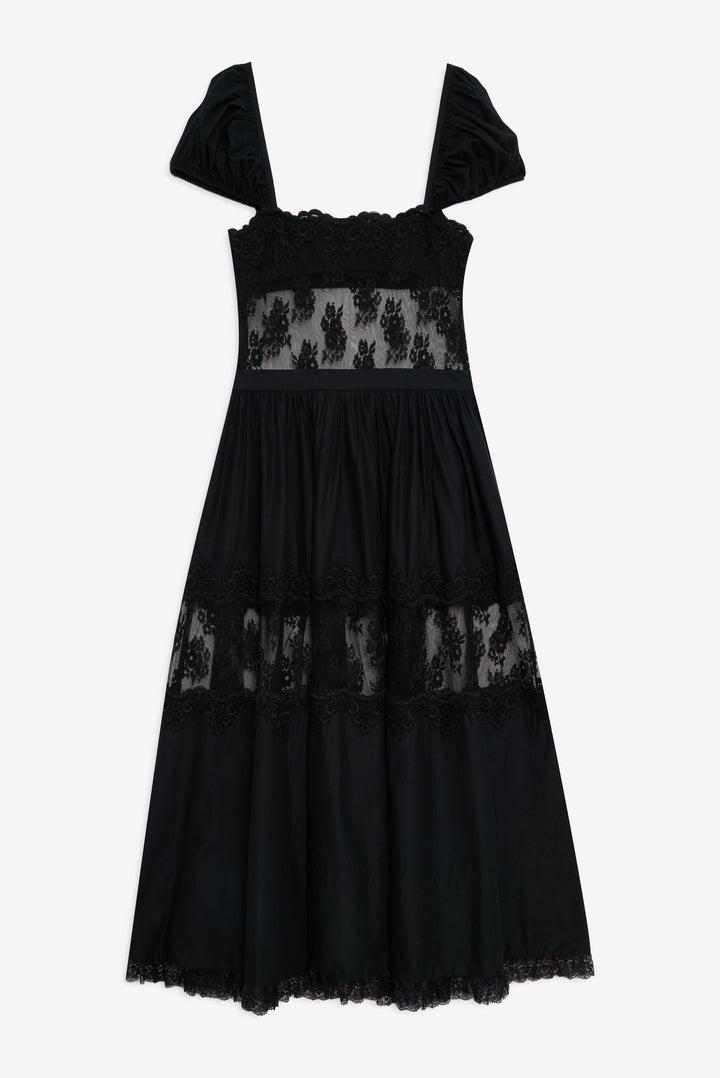 Liya Lace Midi Dress — Black