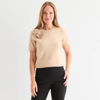 Liz Claiborne Womens Crew Neck Short Sleeve Pullover Sweater