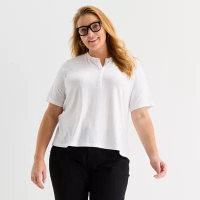 Liz Claiborne Womens Plus Short Sleeve Regular Fit Henley Shirt