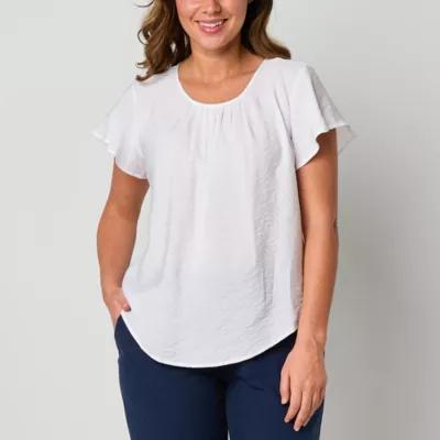 Liz Claiborne Womens Scoop Neck Short Sleeve Blouse