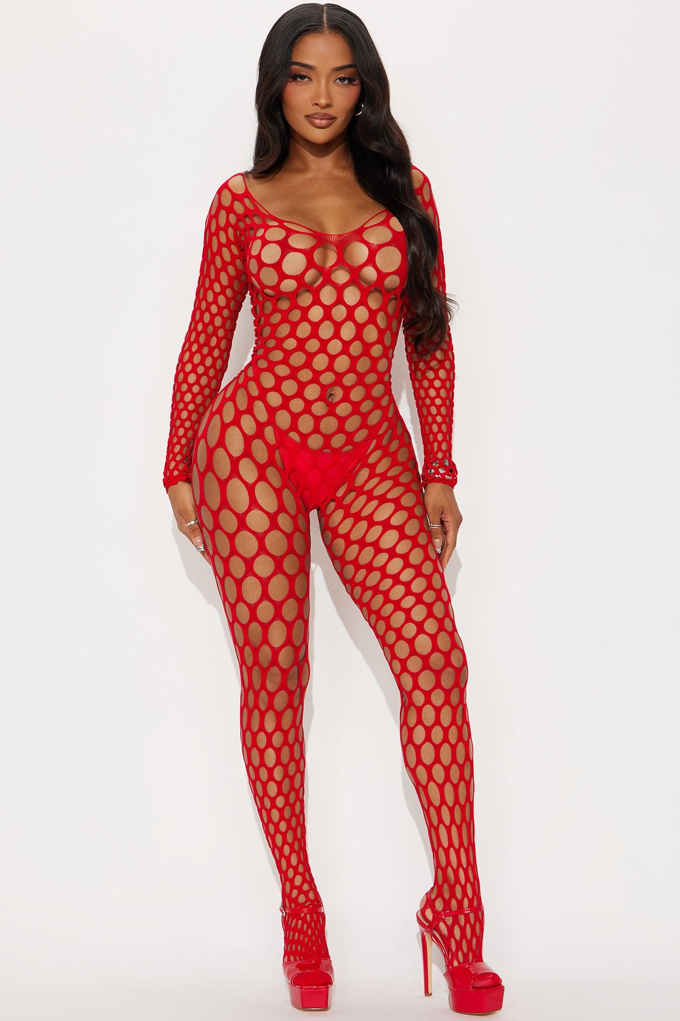 Liz Full Fishnet Crotchless Bodystocking - Red Female