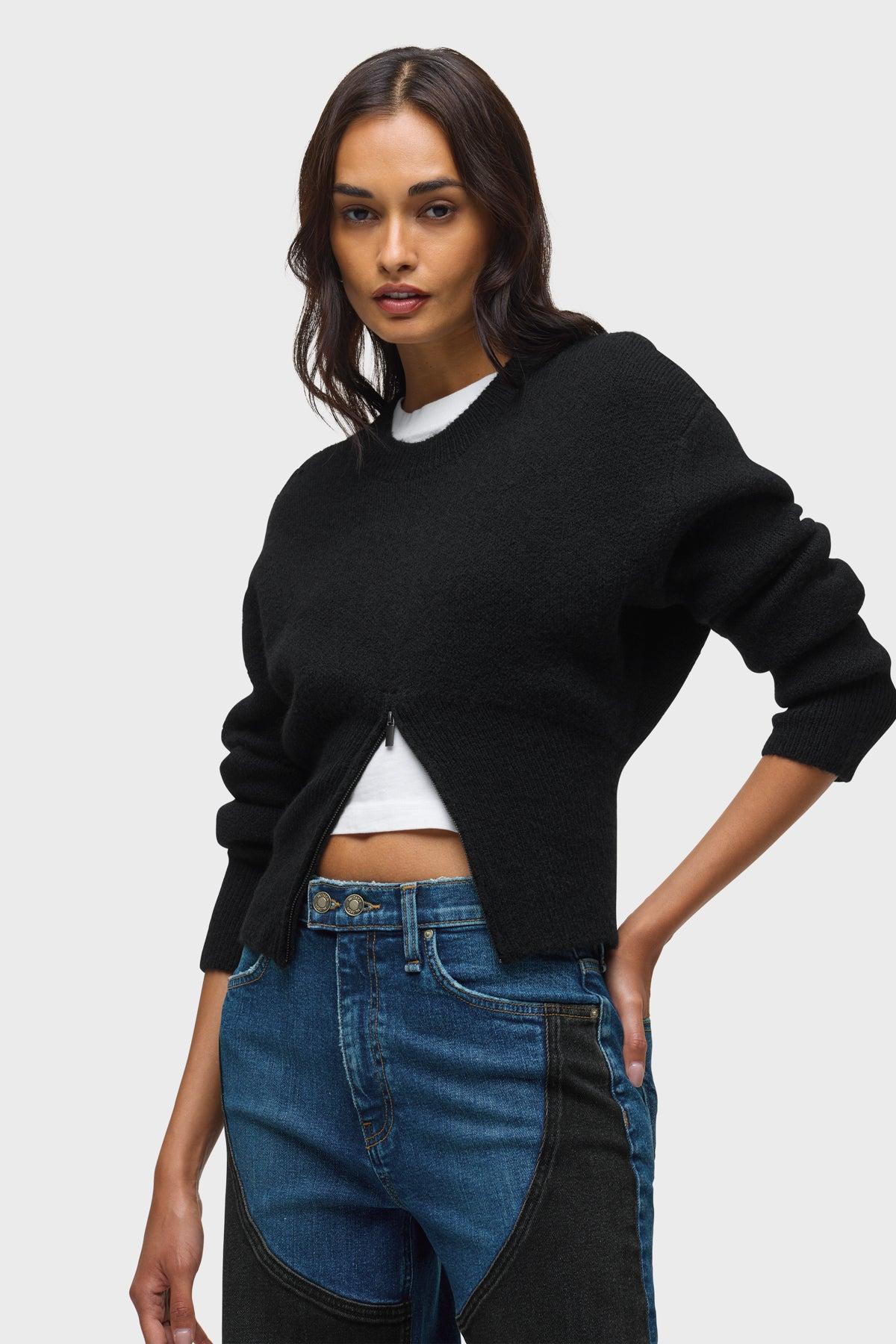 Description The Lizbeth Front Zip Sweater in Black is a versatile, cozy long-sleeved sweater with endless styling potential. It features crewneck styling and a front functional zipper. Product Details Body Length: 20.25", Chest: 45", Sleeve Length: 21.5" Fit & Care Content: 50% Wool, 28% Nylon, 19% Acrylic, 3% Spandex Dry clean only