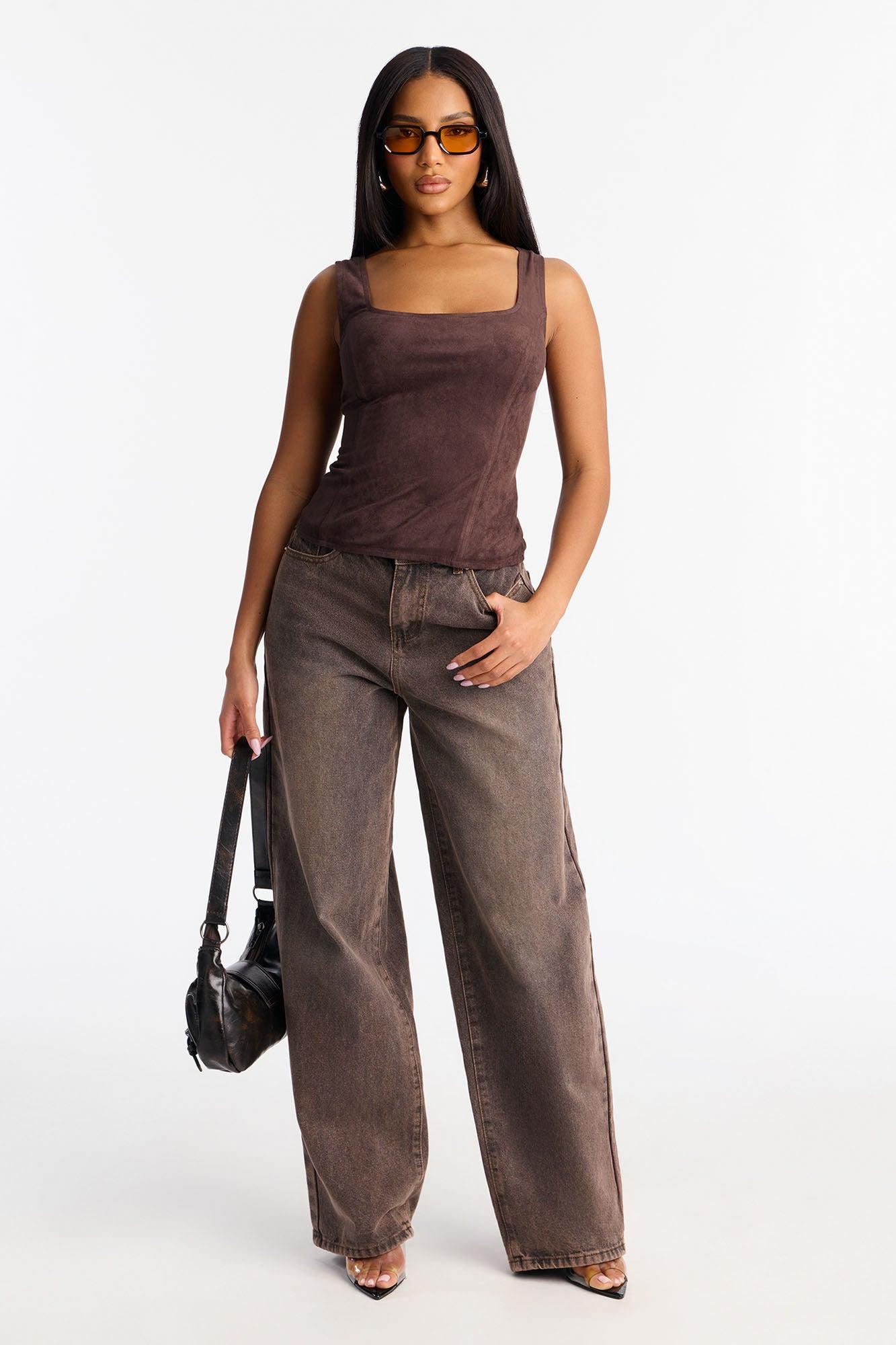 Lizzie Faux Suede Tank Top - Chocolate Female
