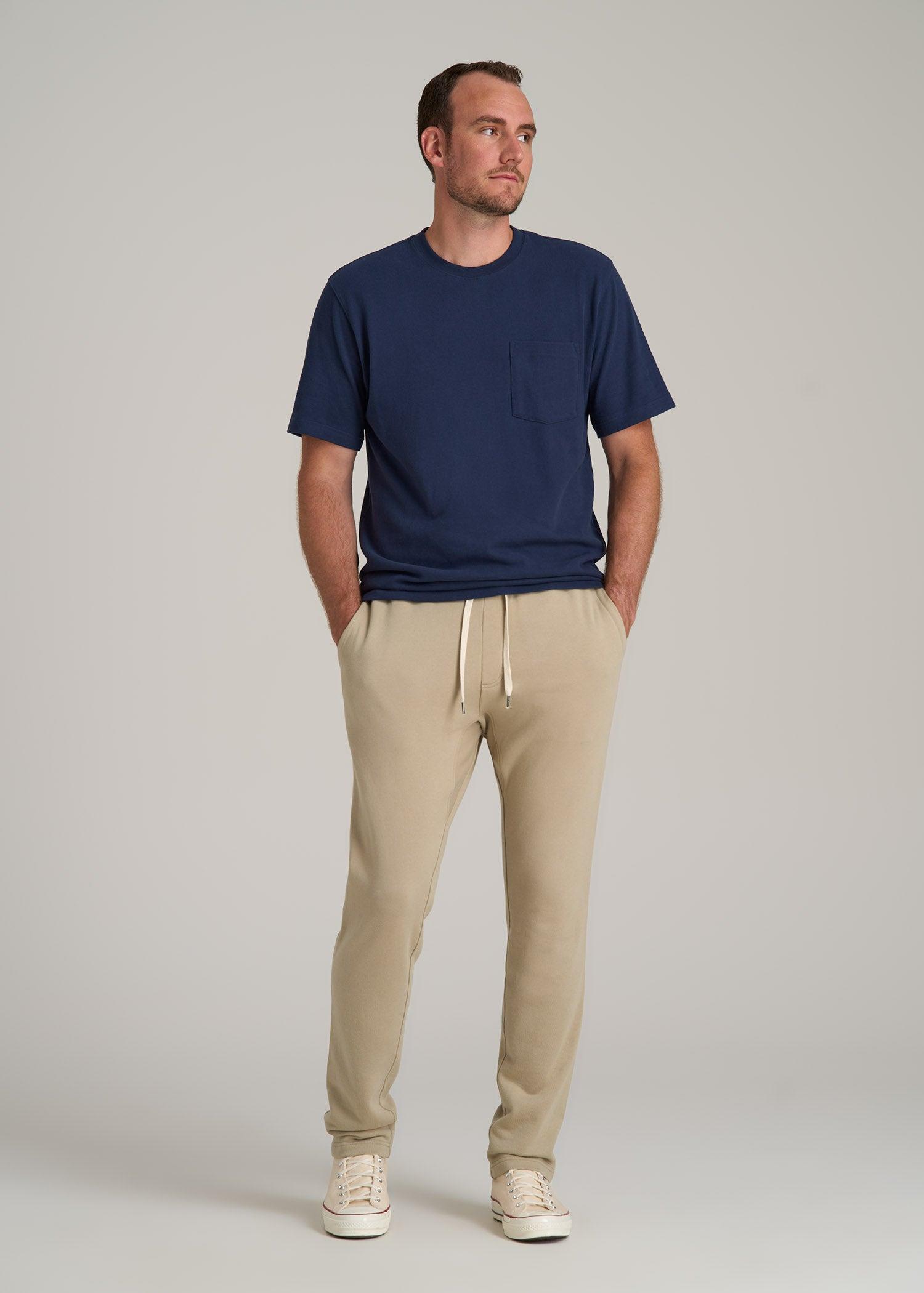 From travel days to vacays, these French Terry pants for tall men are an essential go-to. We designed them with a regular fit that’s tailored just for men from 6'3 to 7’1. They have an extra long inseam without the added width you’ve experienced with other brands. Flattering yet casual, we made these men’s tall pants with breathable cotton for next-level comfort. They’ve been pre-washed and shrinkage controlled to make sure that the fit stays perfect. Slash pockets provide essential storage while you can adjust your fit with the external drawstring. Designed with an absorbent French Terry, these tall men’s pants are perfect for everything from weekends at home to hours spent at the airport.