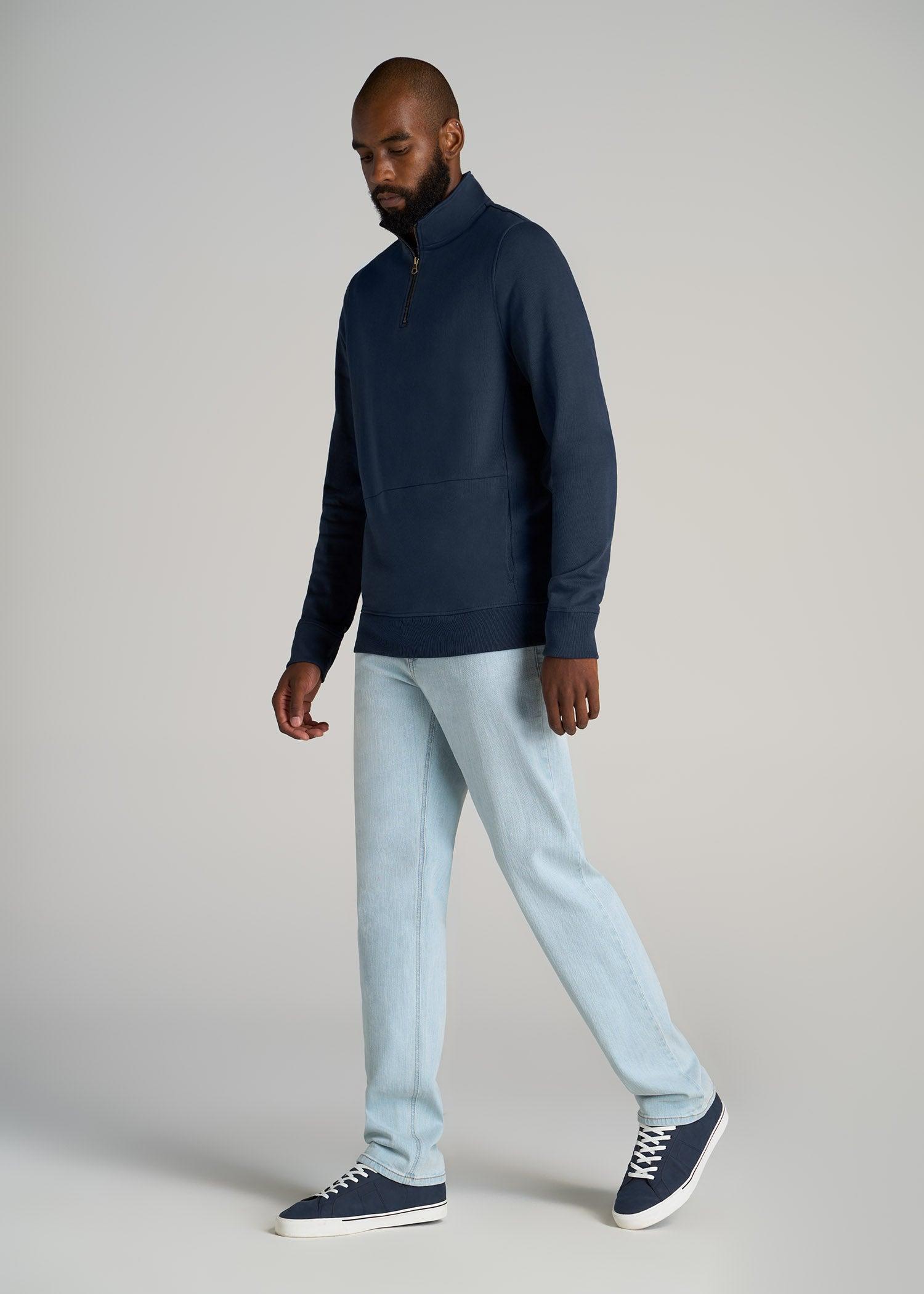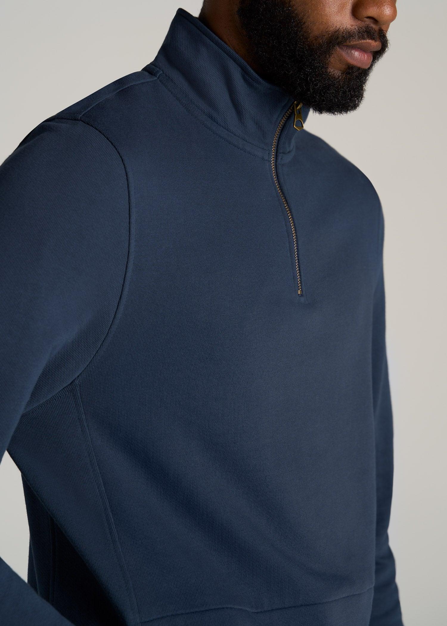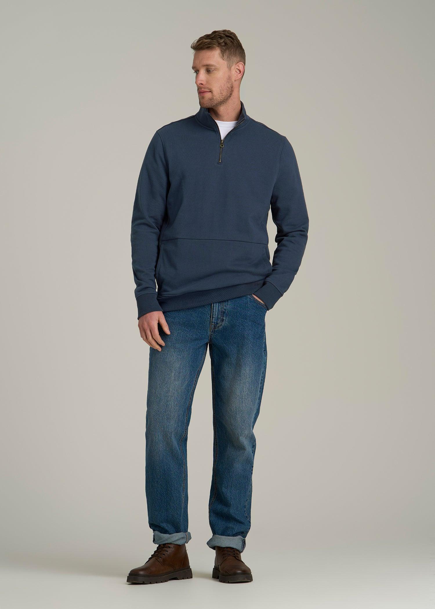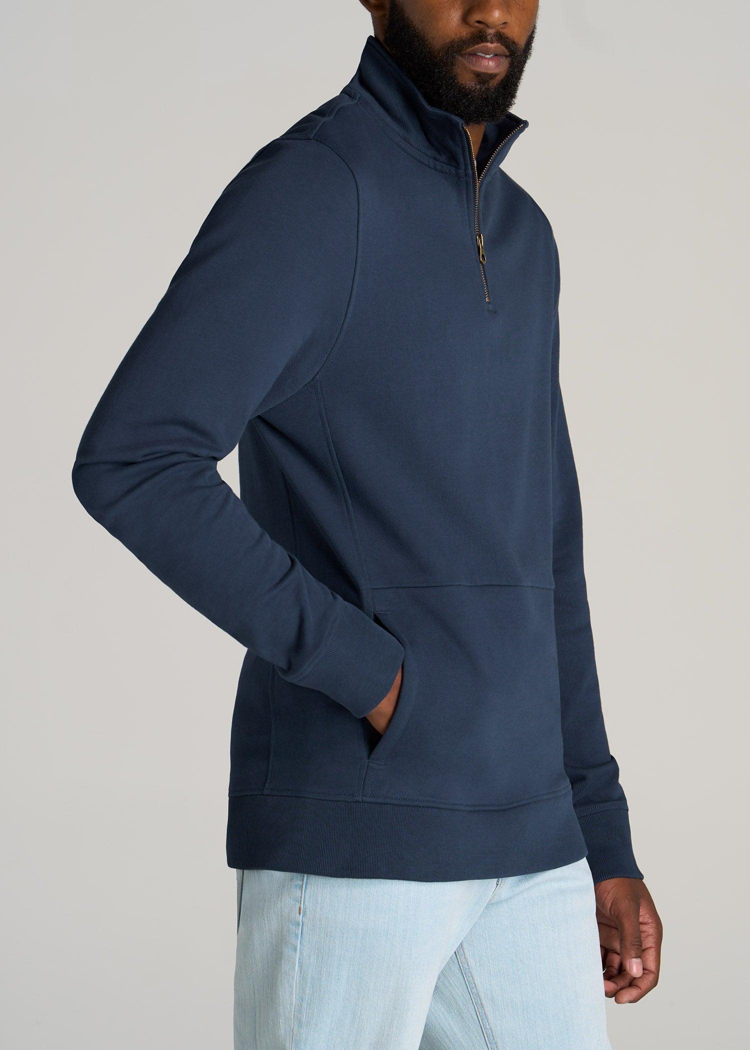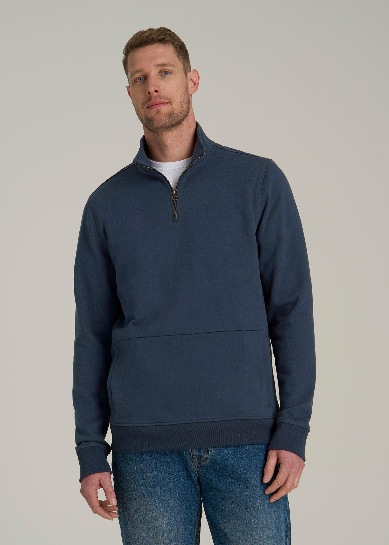 About Our Tall Men's Sweatshirt After a hard day at work, kick back and relax in this tall quarter-zip sweater. Your clothes should work as hard as you do, which is why we crafted this pullover from our LongJohn & Sons brand with a heavyweight French Terry that's as comfortable as it is long-lasting. We know the struggles of finding a quality tall men's sweatshirt, which is why all of our clothing is stitched for tall guys just like you, with proper proportions at every seam. The no-fuss regular fit is cozy without being baggy, and the long sleeves will actually go all the way past your wrists. The quarter-zip front, kangaroo pocket and pocket openings at the seam all provide convenient touches that every guy needs in their off-duty wear. Plus, this pullover has been pre-washed and shrinkage controlled, so you don't have to worry about tossing it in the wash. Throw it on with your go-to sweatpants, jeans or even a pair of chinos. SIZE & FIT: Long sleeve pullover Regular fit Quarter-zip front with metal zipper pull Stand collar Model is 6'4", 205lbs wearing size M Tall Size M Tall: Body length: 31.25", Sleeve length: 38.75" FABRIC & CARE: 100% heavyweight cotton Pre-washed and shrinkage controlled Ribbed cuffs and band Kangaroo pocket with jersey lining Pocket openings slashed at the seam Machine wash cold with like colors Tumble dry low Low heat iron if needed Do not bleach