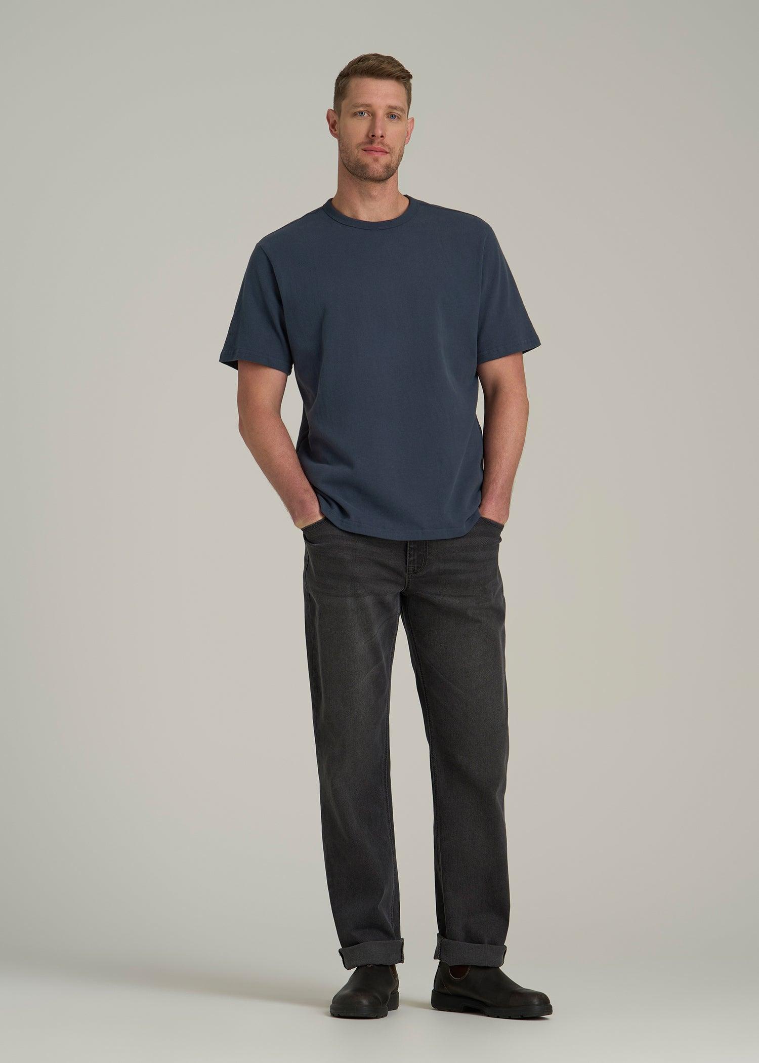 This men's tall t-shirt is as sturdy as it is comfortable. Every guy needs a tee he can reach for when the weather's a bit colder or he needs something a bit thicker, and this heavyweight t-shirt from our LongJohn & Sons brand is just that. Made for guys between 6'3” and 7'1”, it pays homage to the craftsmanship of generations past, offering quality that will last for years to come. Since we know how hard it is to find a good t-shirt for tall men, we made this one with your height in mind. It has an extra-long body that will end below the hip and short sleeves that are the right length for your arms, so you don't have to worry about how your clothes fit while you work on the job site or grab beers with your friends. It's made of ultra soft 100% cotton jersey knit that's super comfortable with a heavy feel. Wear it with your go-to blue jeans and a flannel shirt.