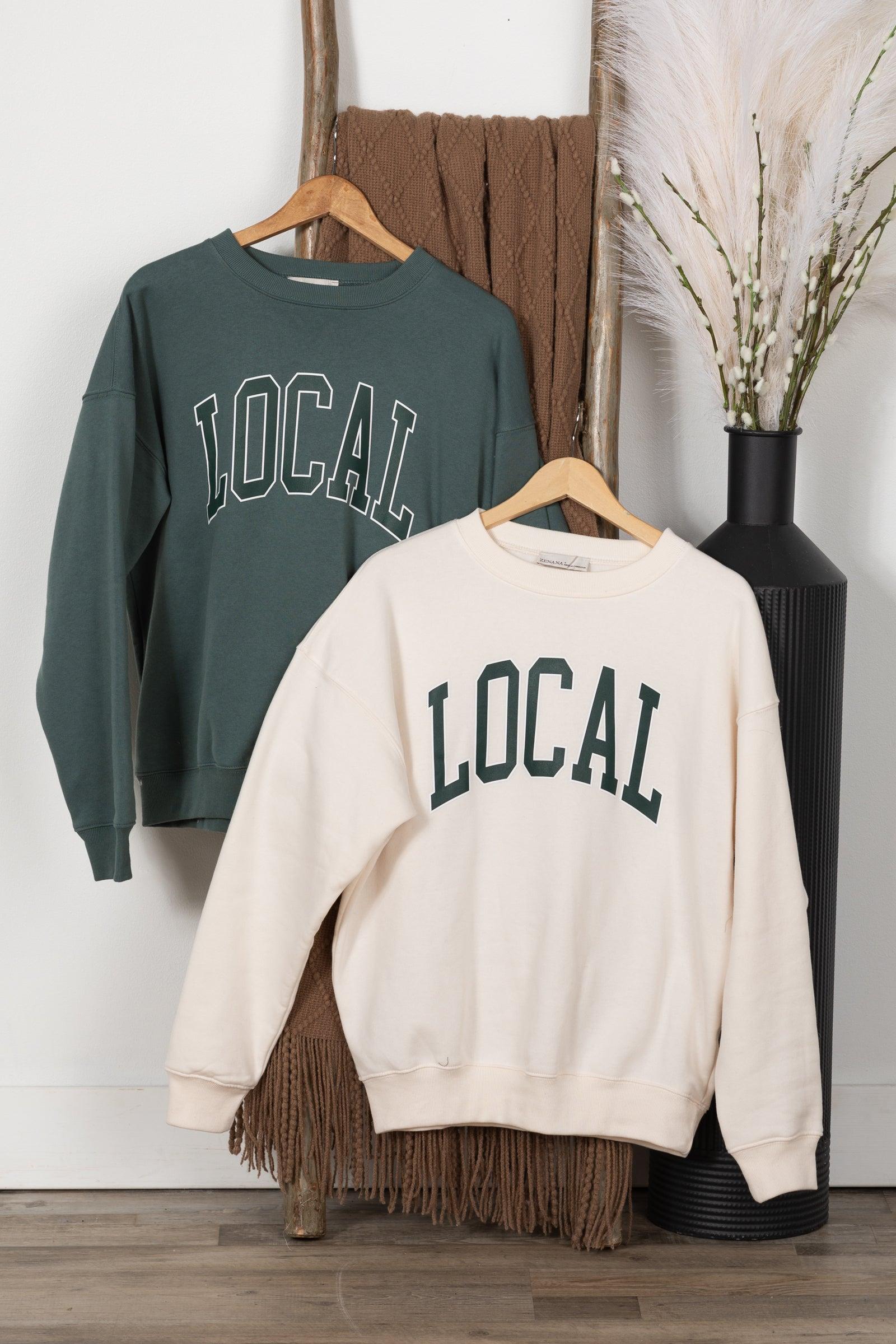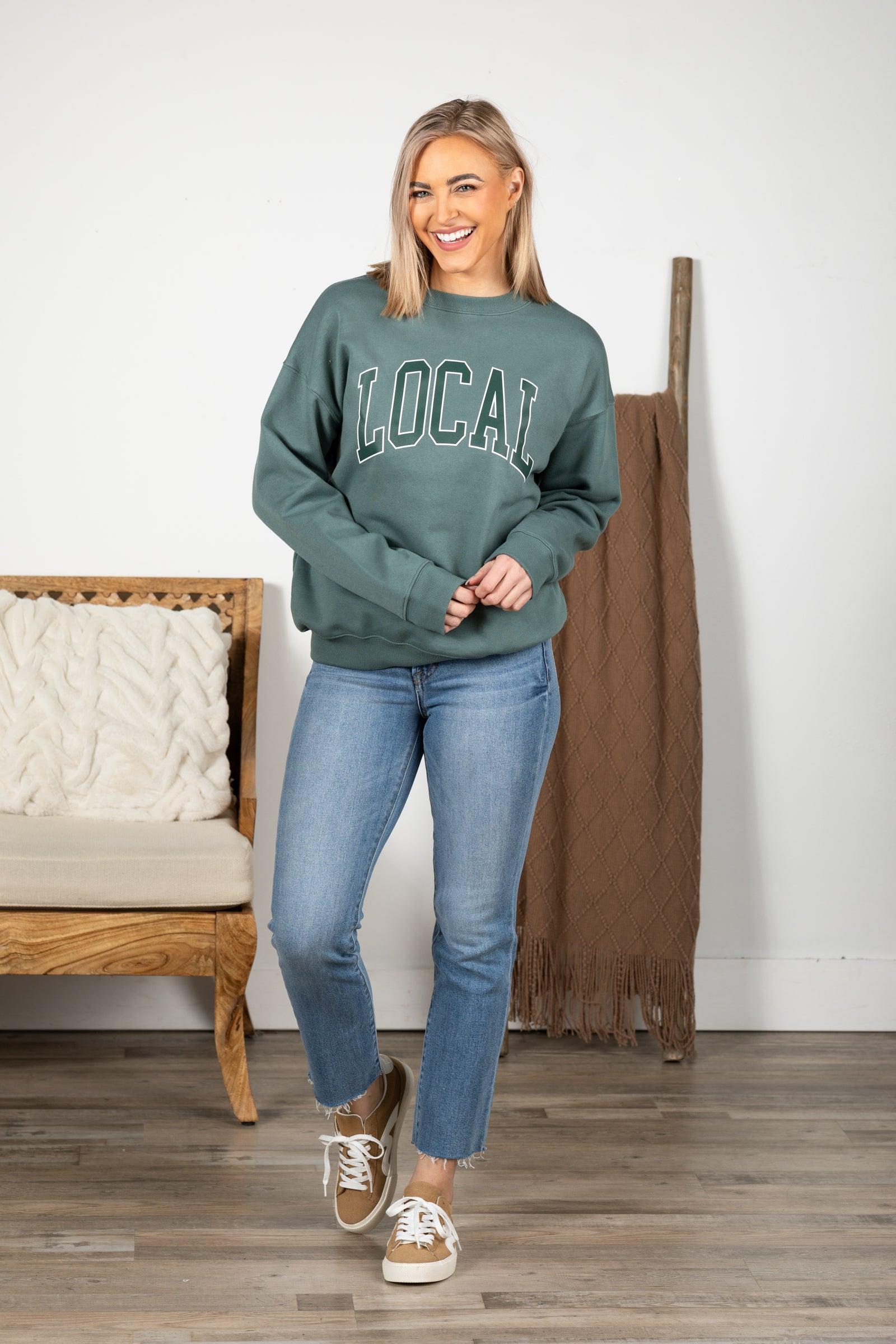 Product Details Colors: Ash Jade, White/ Cream, Hunter Green Print: Graphic Neckline: Round Sleeve: Long Sleeve Hemline: Straight Brand: Zenana Material and Care 60% Cotton 40% Polyester Machine Wash Cold Hang/Line Dry Size and Fit Small: Bust 47" Waist 44" Length 25.5" Medium: Bust 48" Waist 46" Length 26.5" Large: Bust 49" Waist 48" Length 27.5" Model is 5'8 and is wearing a size small