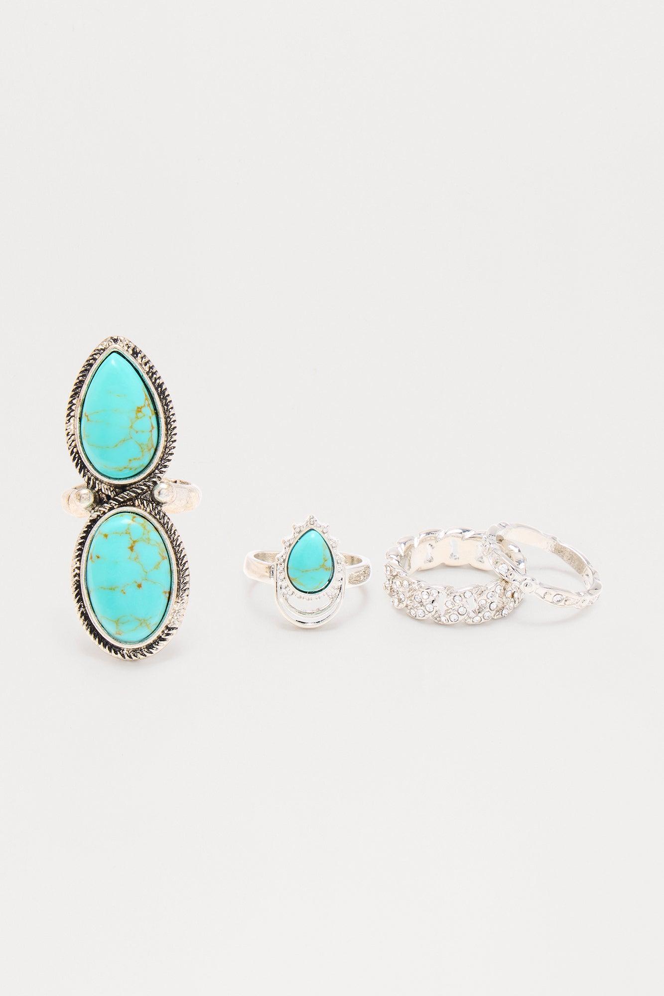 Available In Silver. Size 6/7 4 Piece Multi Ring Set Turquoise Ring Set Imported California Proposition 65WARNING: Cancer and Reproductive Harm - www.P65Warnings.ca.gov.
