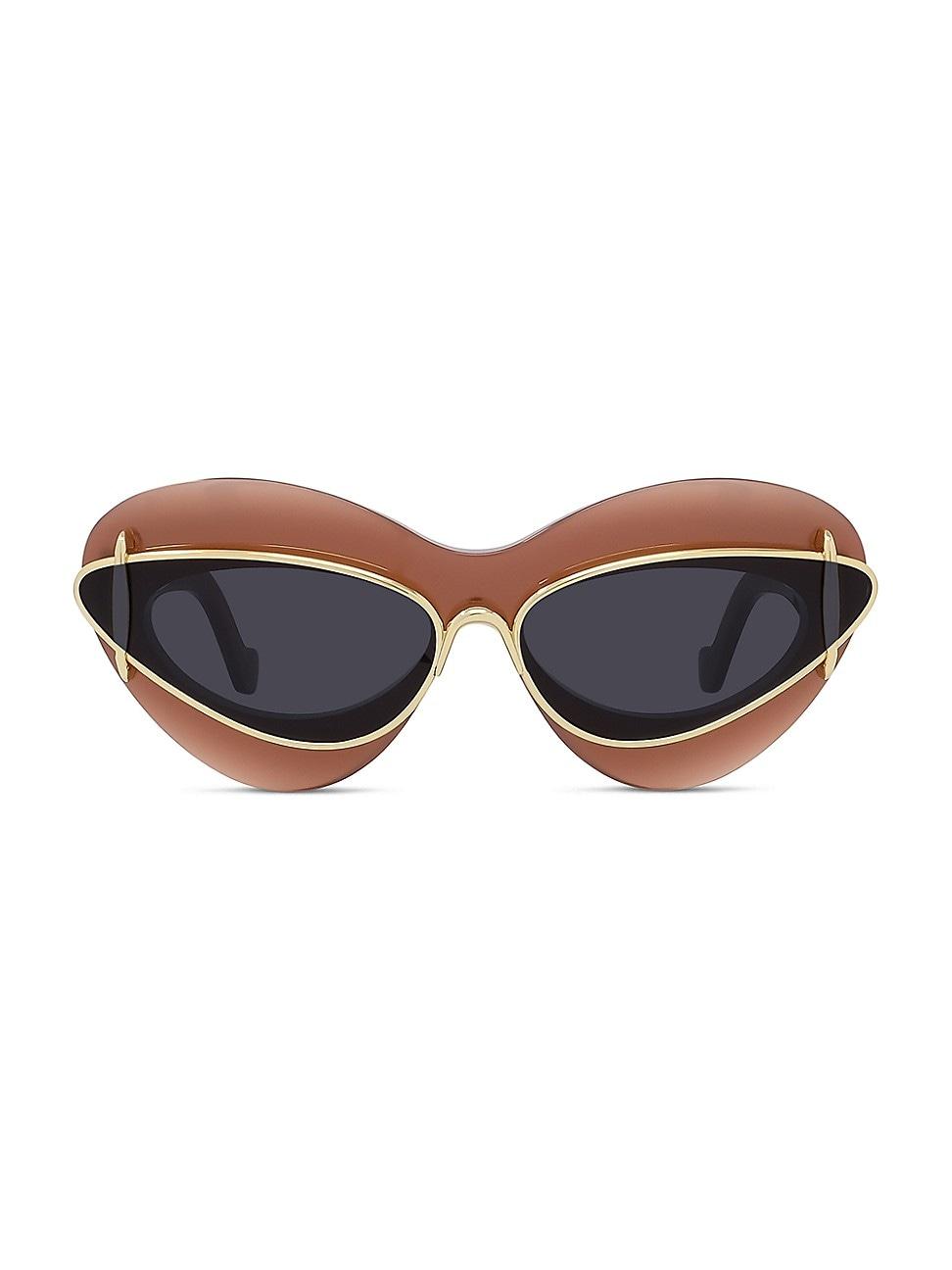 Loewes oval sunglasses feature a tortoiseshell frame doubled with goldtone hardware, solid UV-protective lenses, and etched logo lettering at the temples. 100% UV protection Solid lenses Goldtone hardware Includes case and cleaning cloth Acetate Made in Italy SIZE 67mm lens width 14mm bridge width 140mm temple length. Soft Accessories - Sunglasses > Loewe > Saks Fifth Avenue > Barneys. LOEWE. Color: Dark Havana.