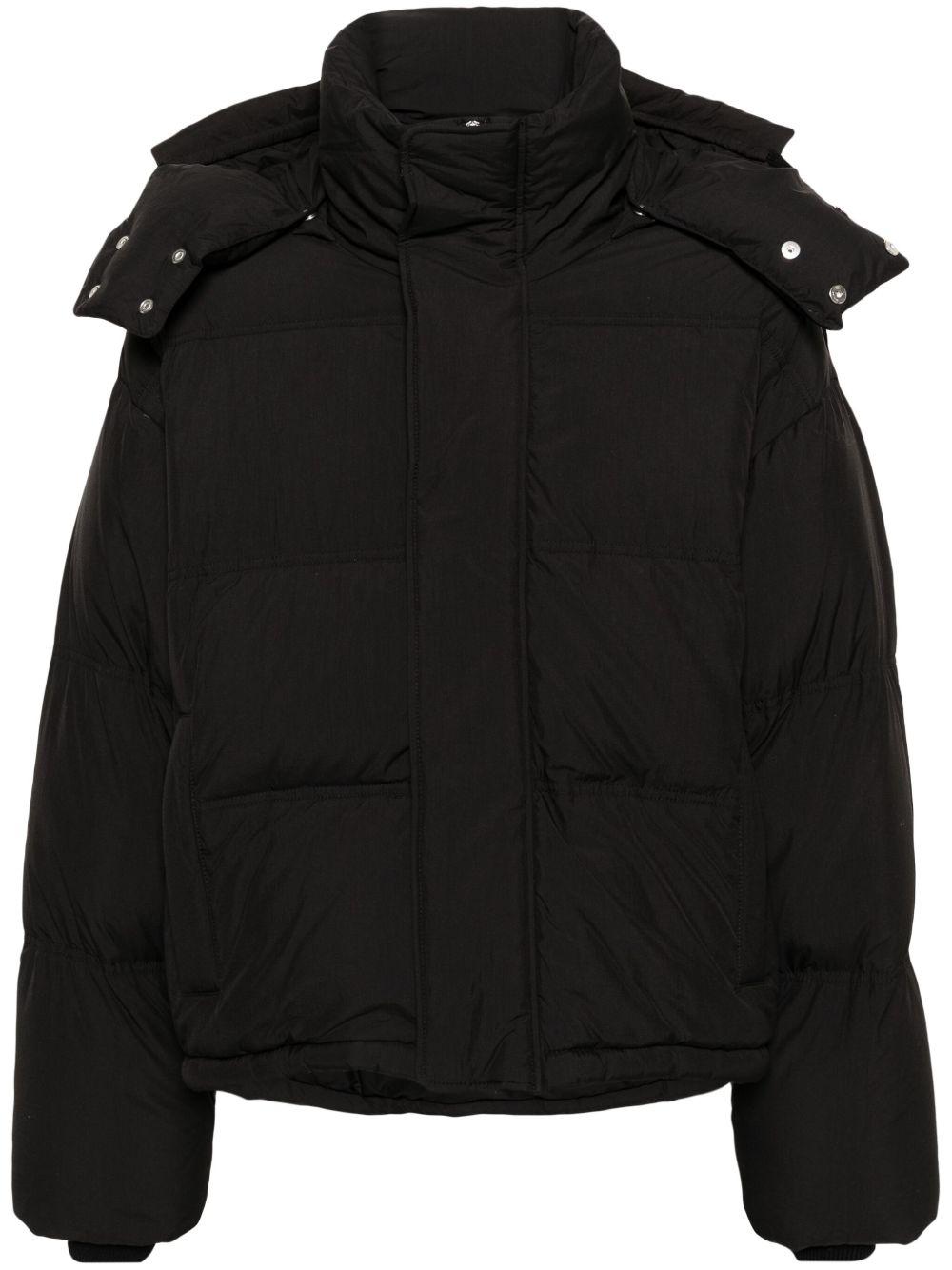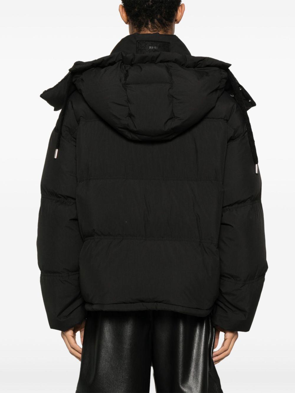 AMI Paris logo-appliqué puffer jacket | Black | black | down-feather filling | padded design | quilted | water-resistant | appliqué logo | funnel neck | front press-stud and zip fastening | detachable drawstring hood | drop shoulder | long sleeves | ribbed cuffs | two side welt pockets | internal slip pocket | drawstring hem | When buying this unisex item, keep in mind that it is graded in standard men's sizing. | Polyamide/Acrylic/Wool/Spandex/Elastane/Polyester/Duck Down/Duck Feathers | Down Jackets | Jackets | Clothing | Women | Down Jackets | Jackets | Clothing | Men