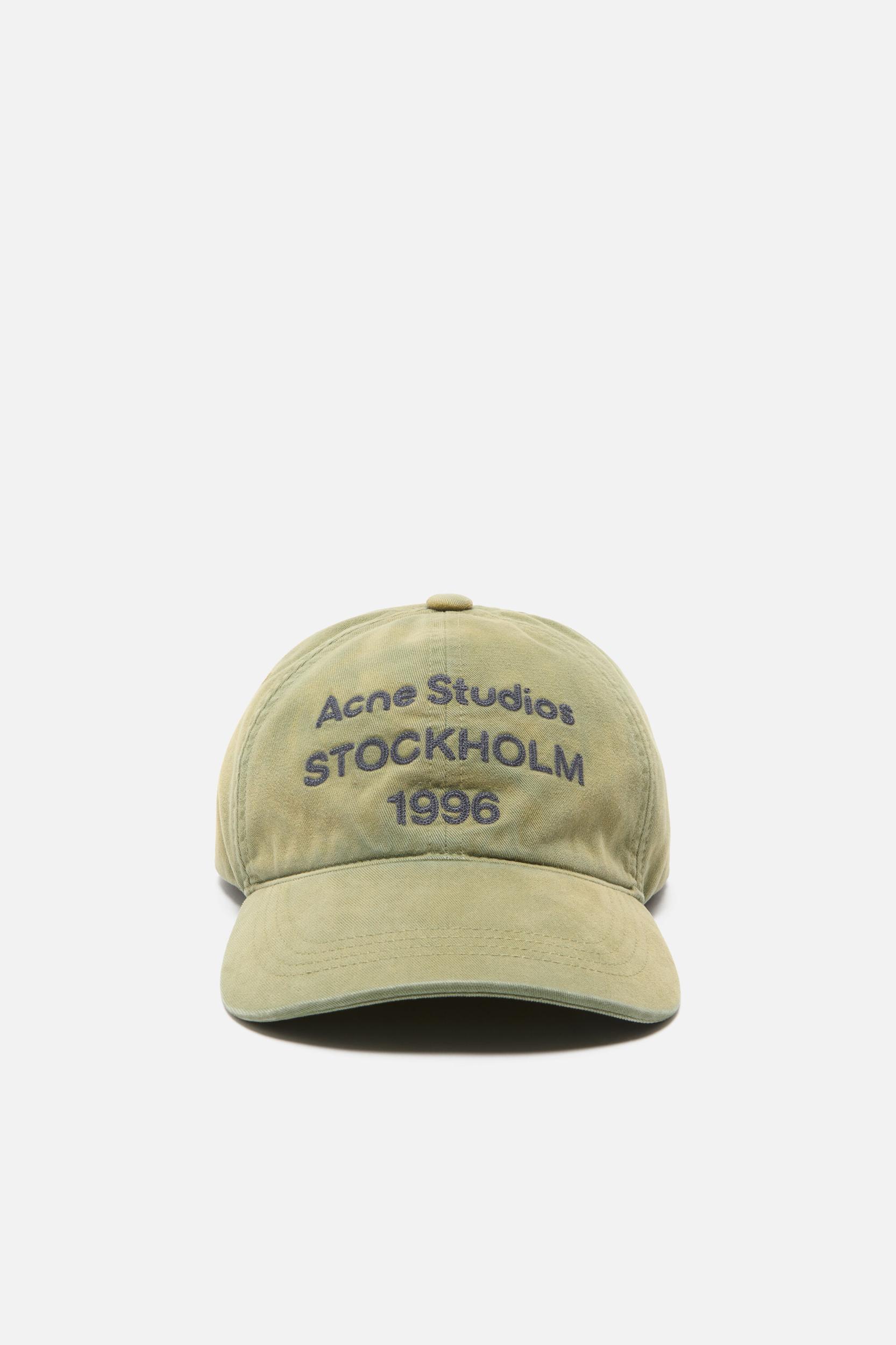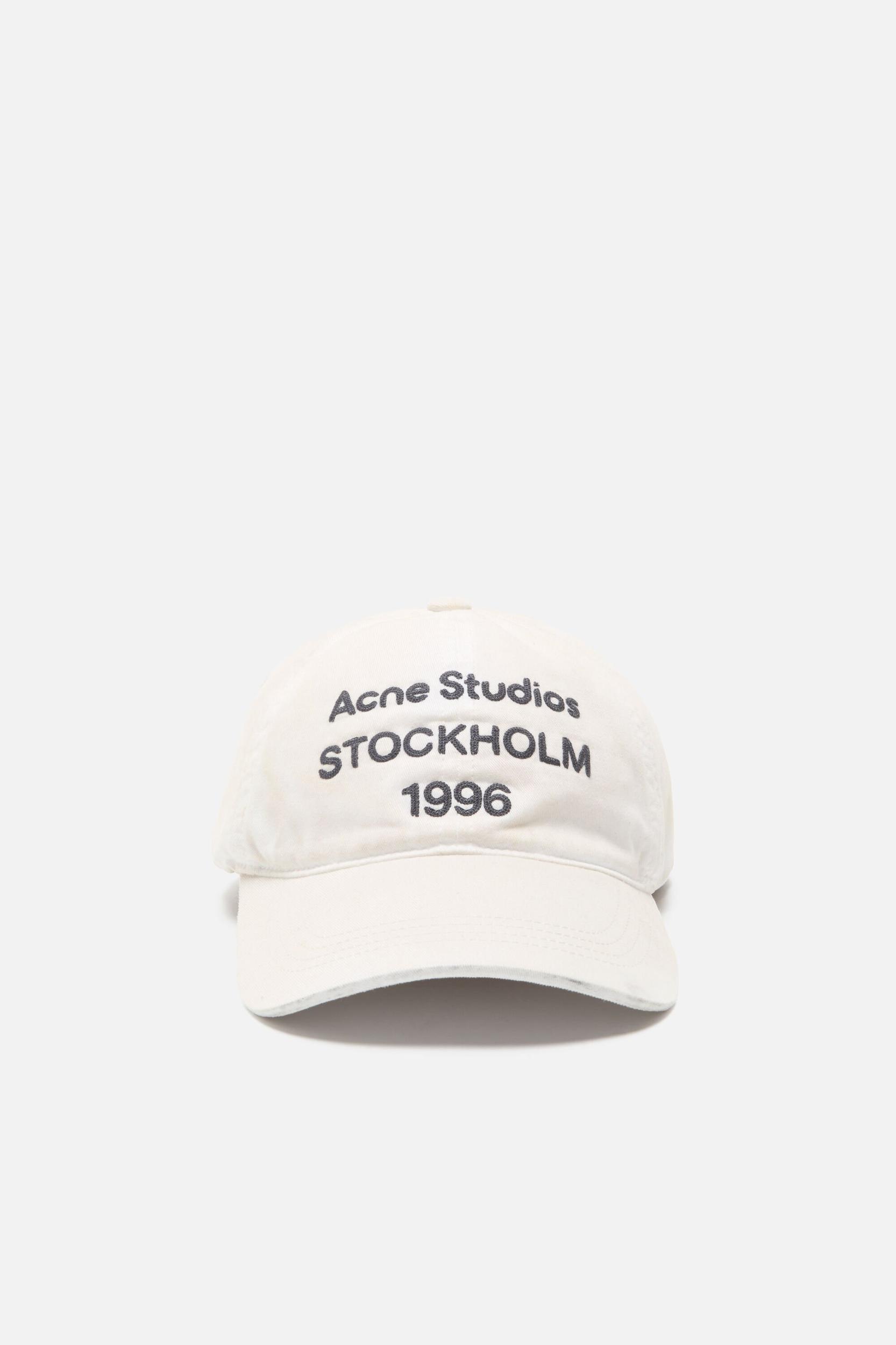 Baseball cap featuring an embroidered Acne Studios 1996 logo on the center front panel. Crafted from peached twill cotton with contrast topstitching and finished with an adjustable D-ring closure. FN-UX-HATS000357