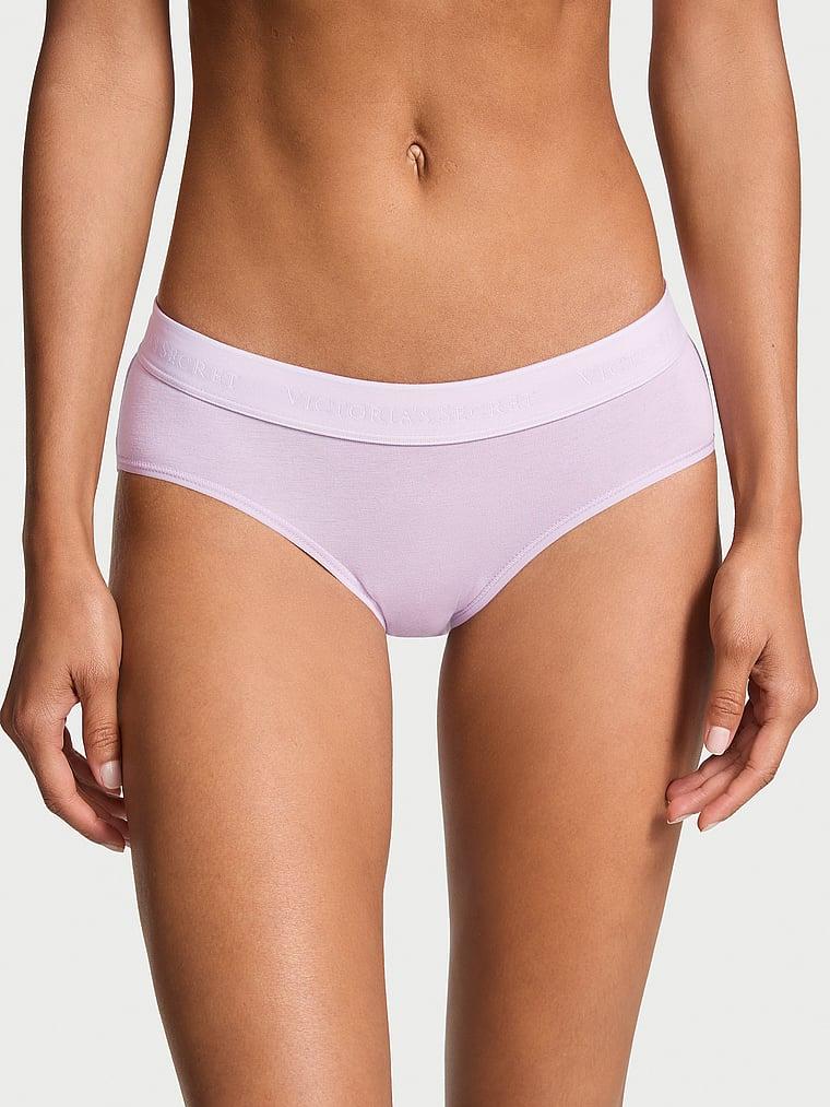 With the smooth fit and everyday comfort you need, this supersoft cotton-modal Hiphugger features our signature, stretchy logo waistband. Mid rise Now with a higher rise in back Full back coverage: shows curves Soft logo elastic waistband Machine wash Imported