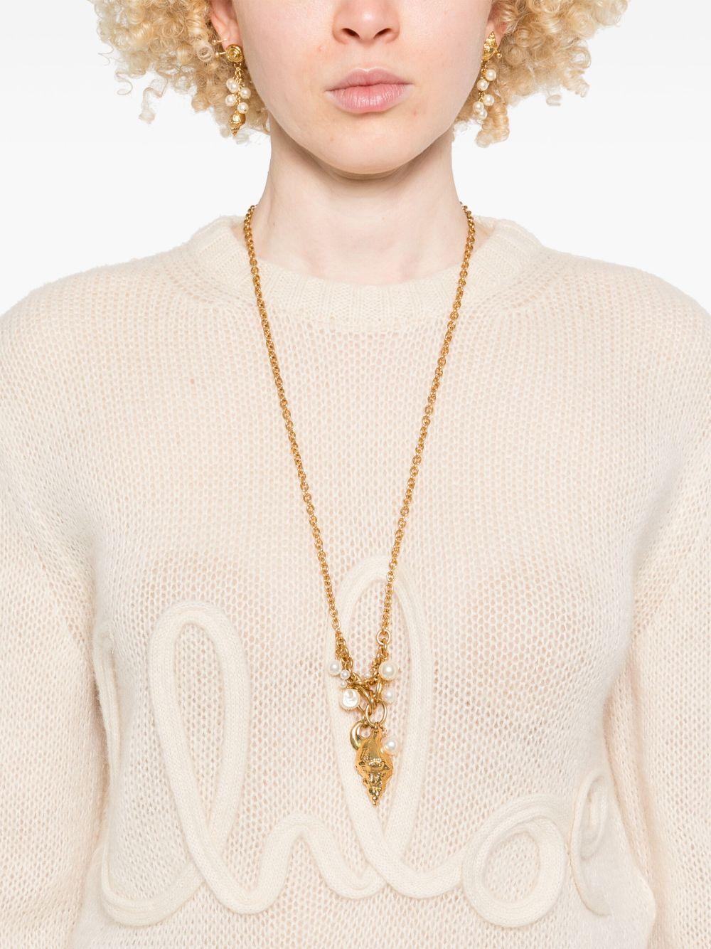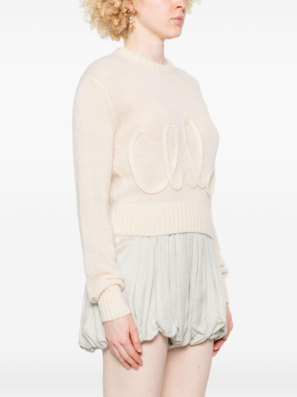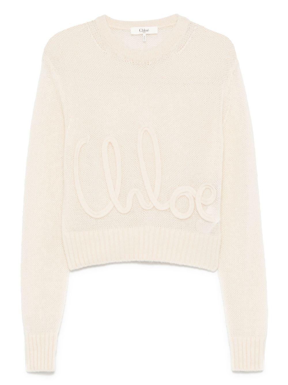 Chloé logo-embellished sweater | Neutrals | light beige | crew neck | long sleeves | ribbed cuffs and hem | Alpaca Wool/Silk | Knitted Sweaters | Knits | Clothing | Women
