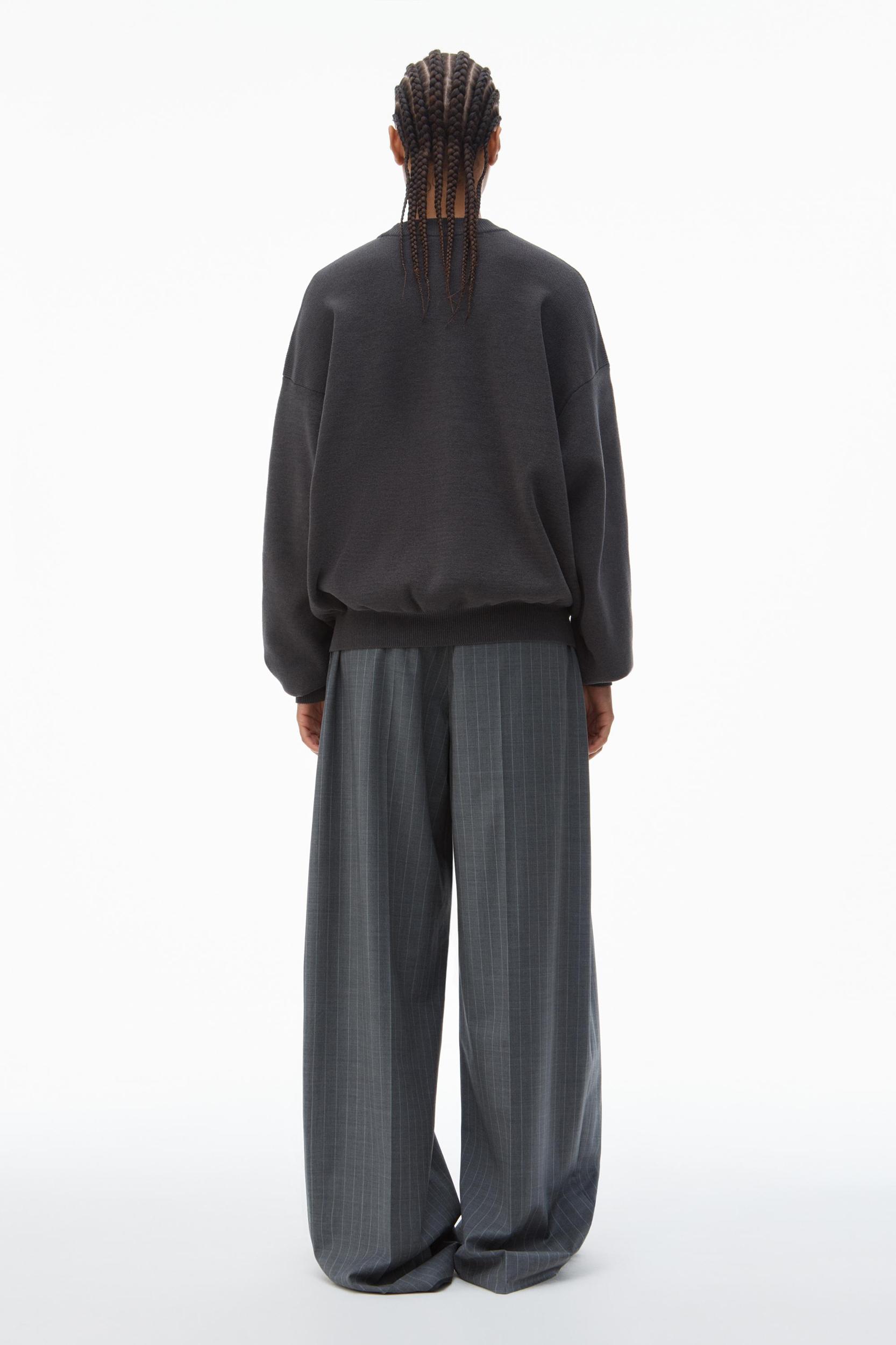 Crafted of plush ribbed chenille, this grey oversize sweater spotlights an embossed logo at the front.