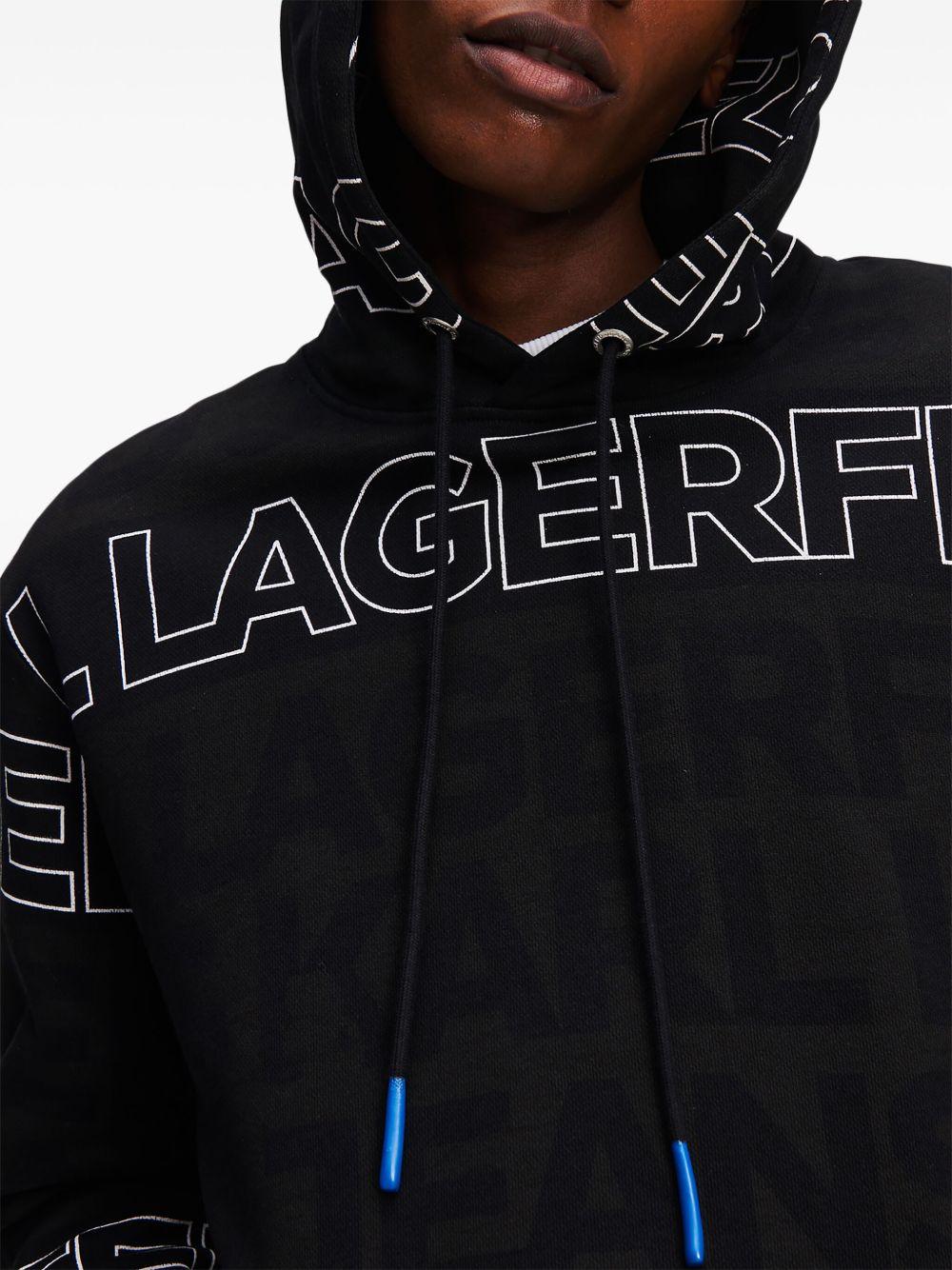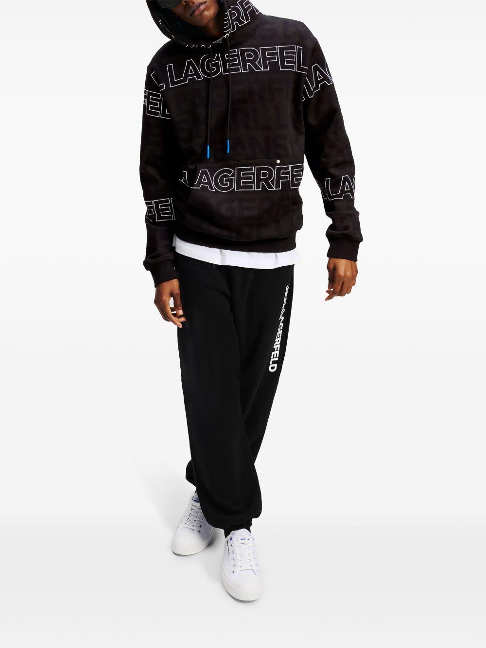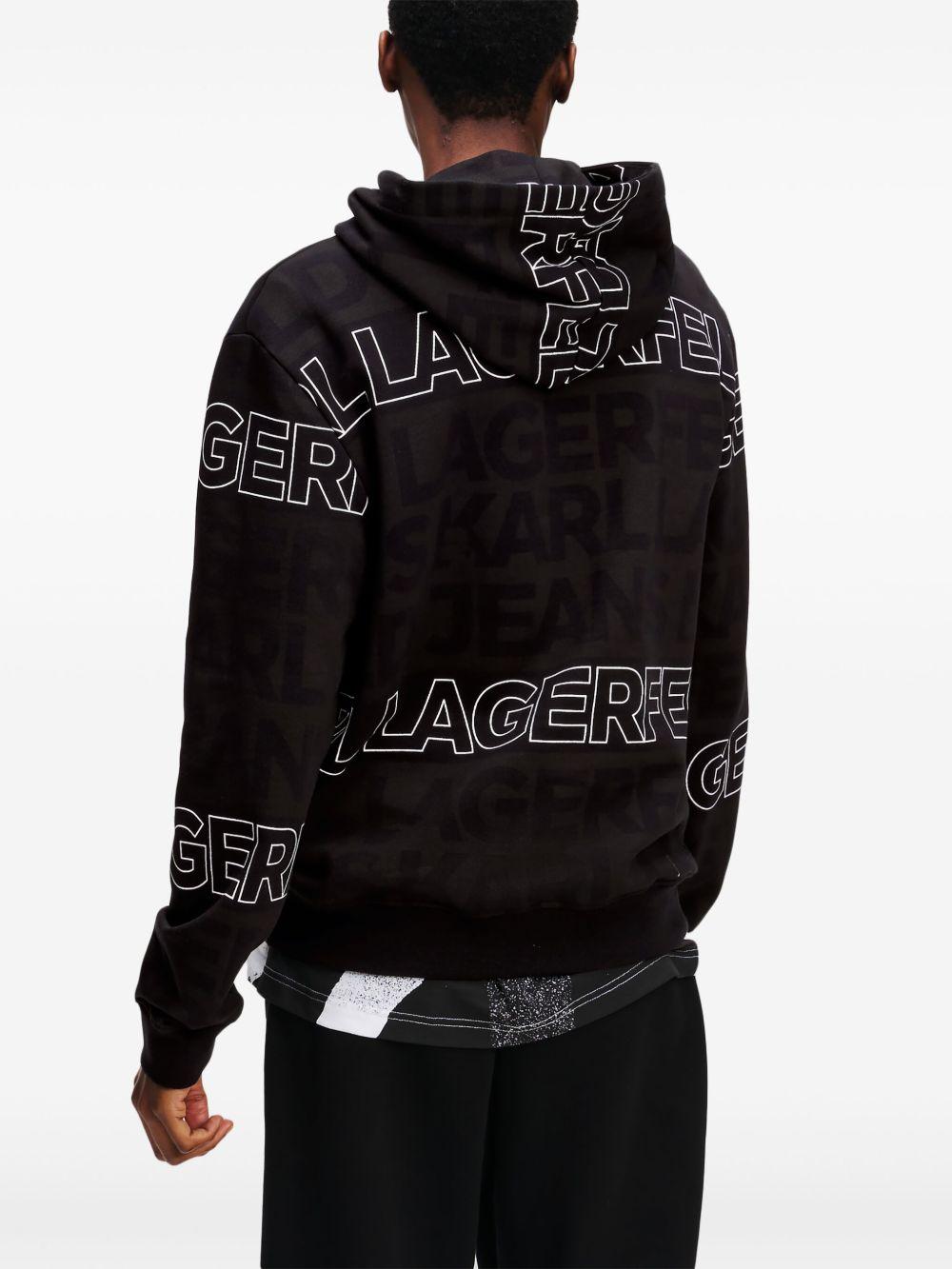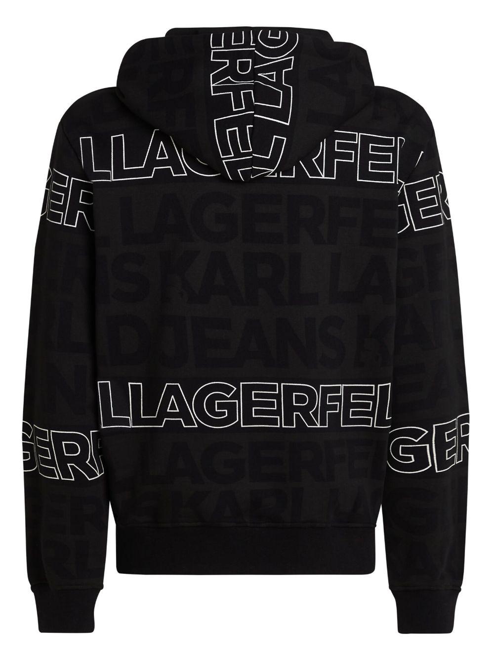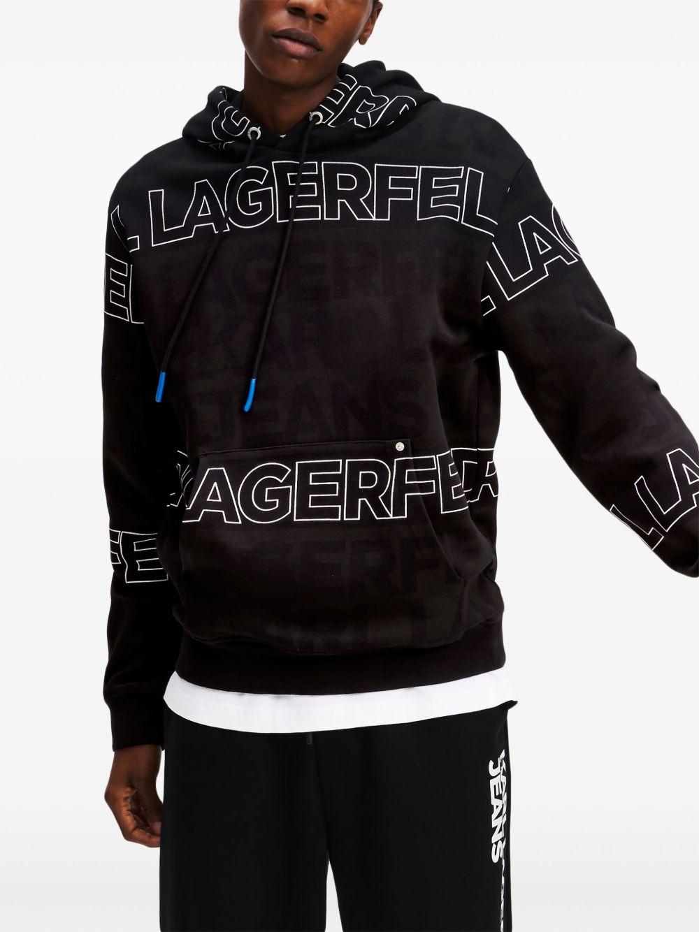 Karl Lagerfeld Jeans logo-embroidered hoodie | Black | black/white | organic cotton | jersey texture | drawstring hood | drop shoulder | long sleeves | all-over logo embroidery | all-over logo print | front pouch pocket | straight hem | Organic Cotton | Hoodies | Sweatshirts & Knitwear | Clothing | Men