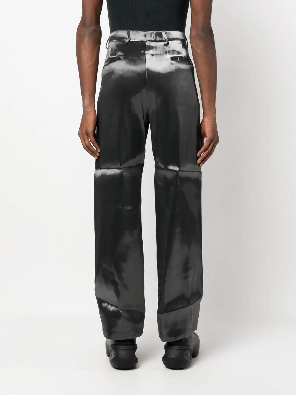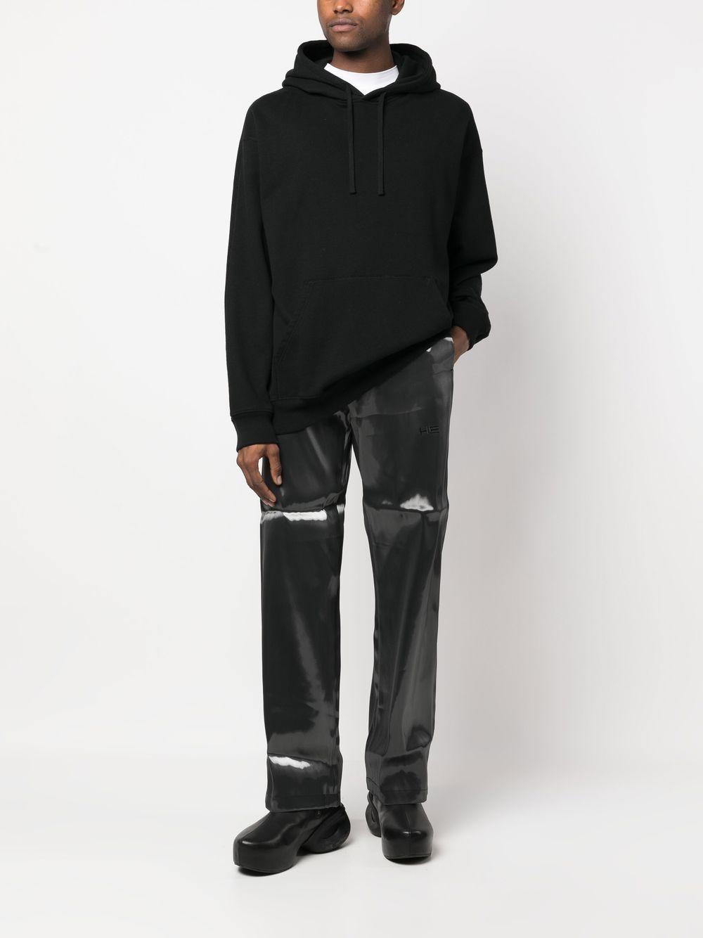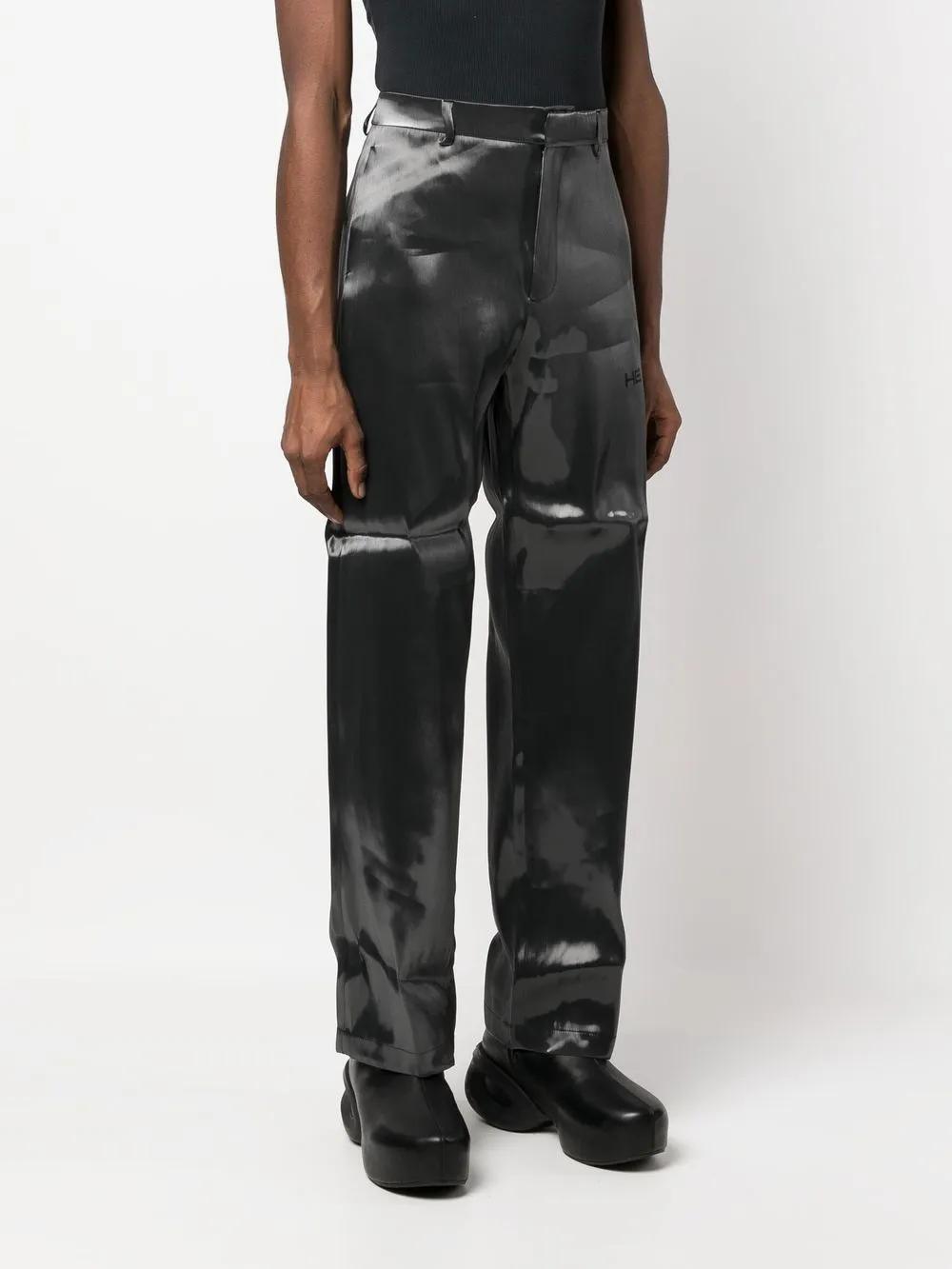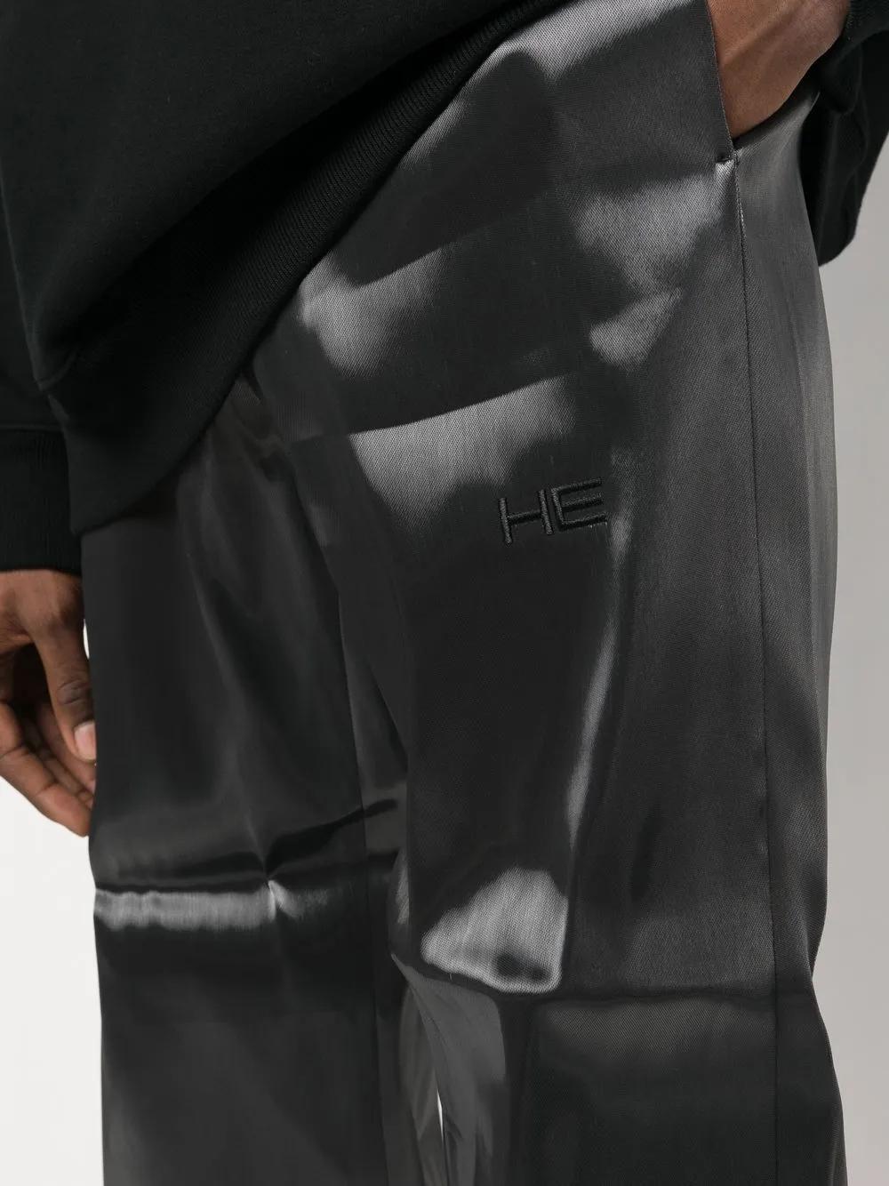 Shop Heliot Emil Gray Liquid Metal Trousers In Negro from 600+ stores, starting at $435. Similar ones also available. On SALE now! logo-embroidered trousers from HELIOT EMIL featuring gunmetal grey, high waist, straight leg, embroidered logo to the front, concealed front fastening, belt loops, slip pockets to the sides and two rear welt pockets.