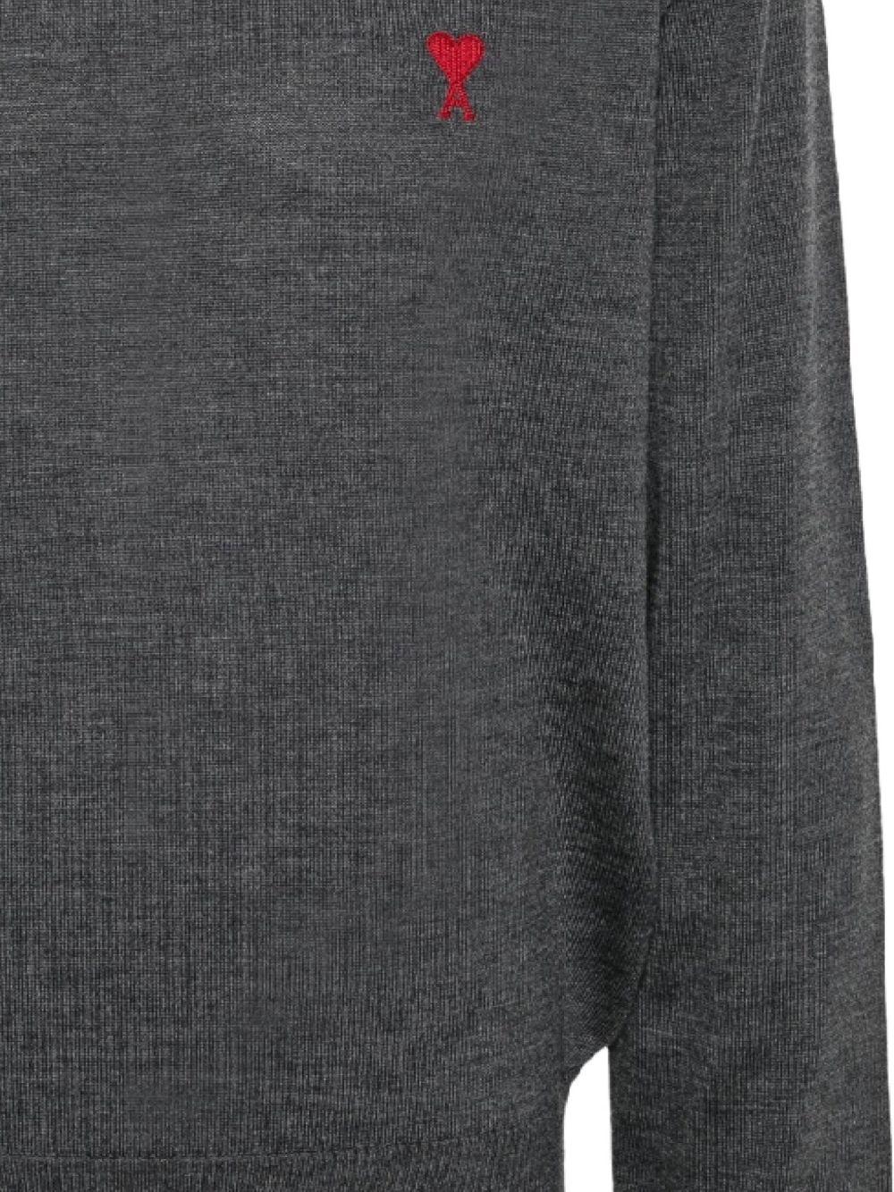 AMI Paris logo-embroidered wool jumper | Grey | anthracite grey | wool | mélange effect | embroidered logo at the chest | pullover design | long sleeves | crew neck | ribbed cuffs and hem | RWS Wool | Knitted Sweaters | Sweatshirts & Knitwear | Clothing | Men