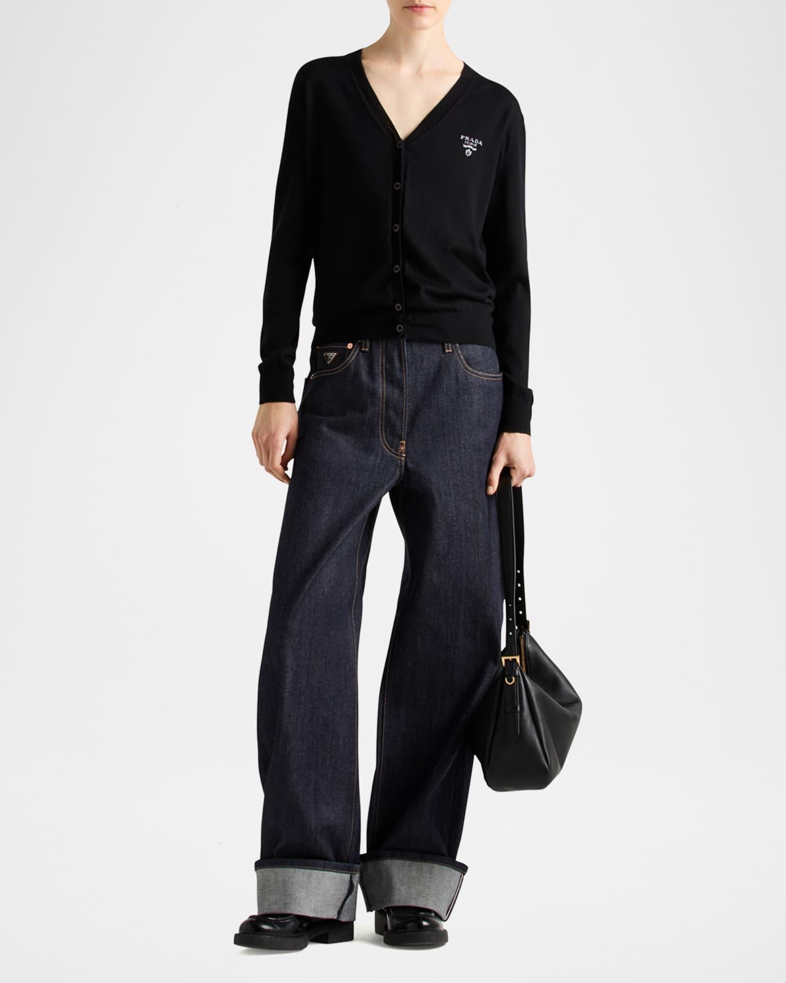 Logo Intarsia V-Neck Superfine Cashmere Cardigan