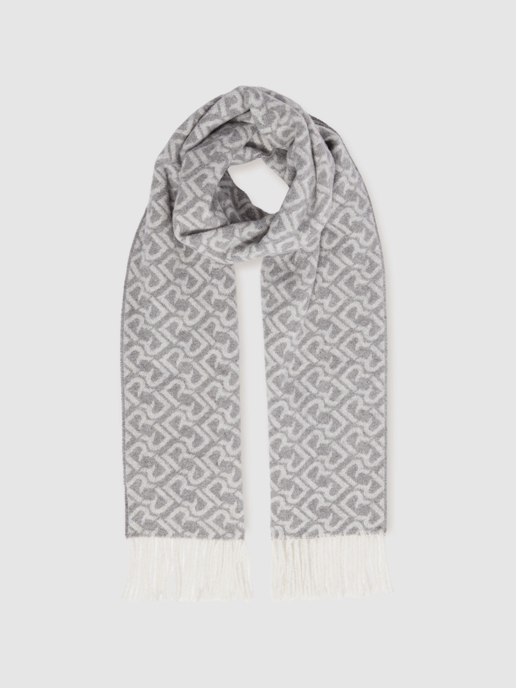 Logo-Jacquard Scarf With Wool in Charcoal / Off White