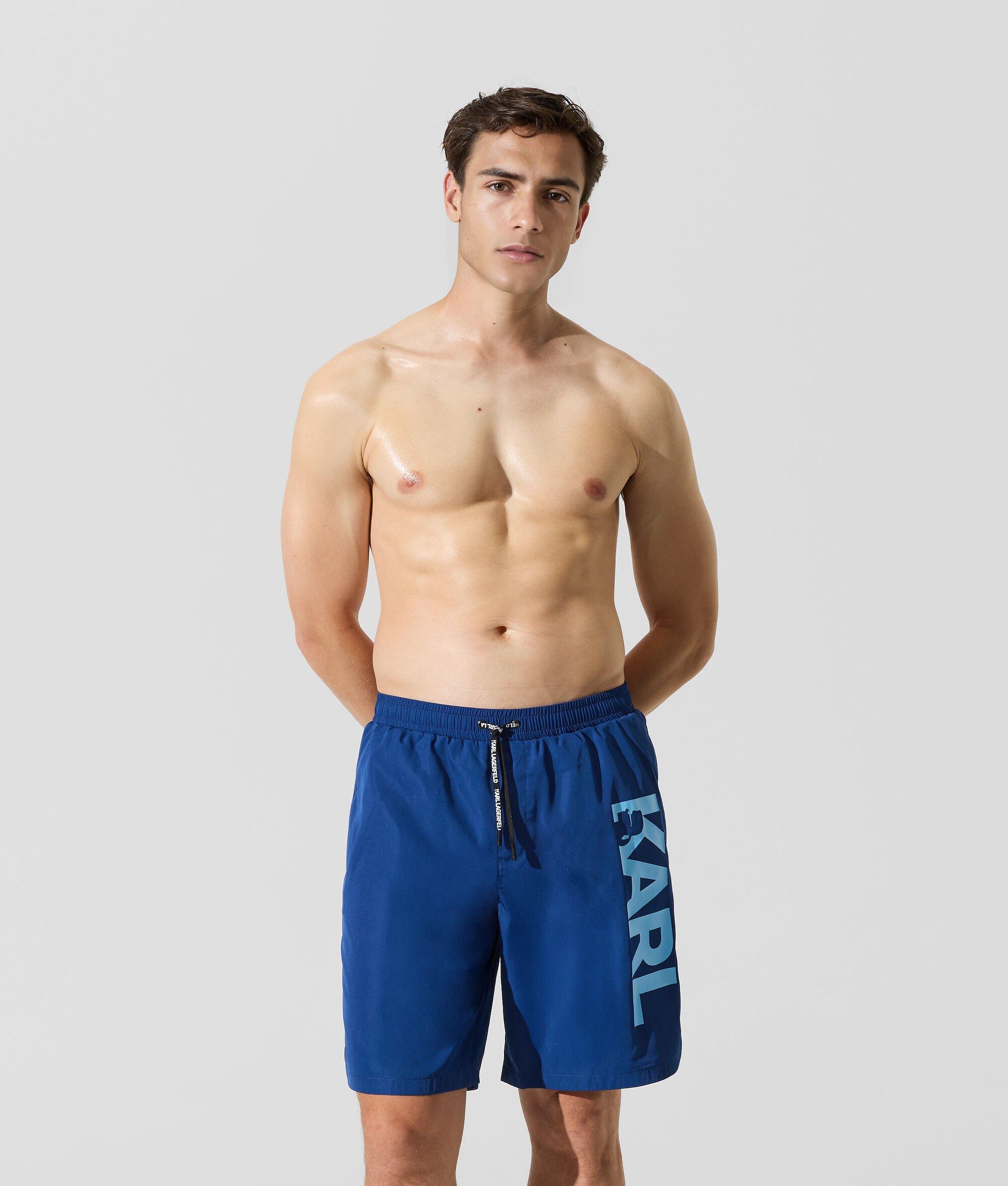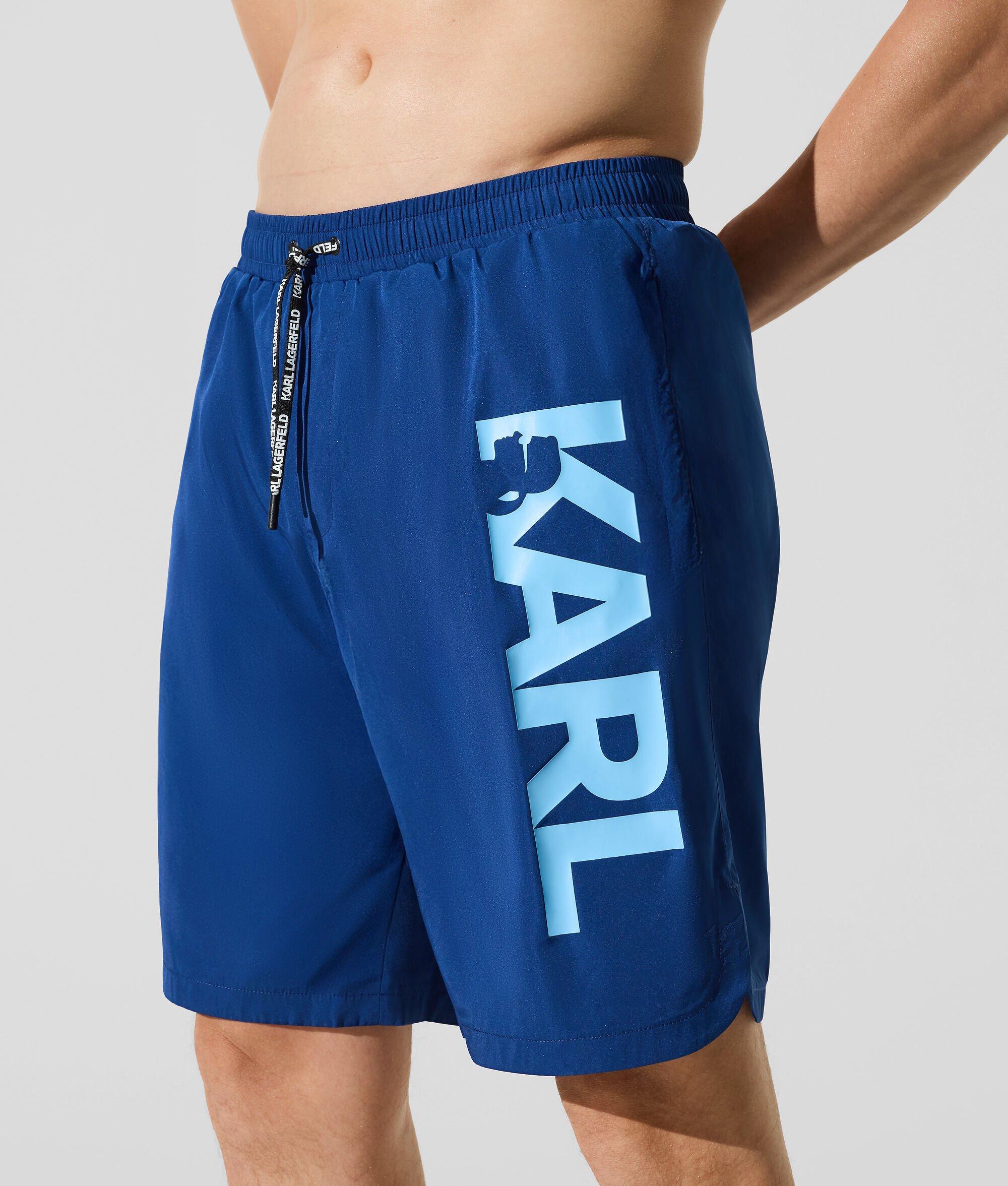 Elevate poolside style with these classic board shorts, featuring a drawcord waist, practical pockets, and accented by the unmistakable KARL logo.