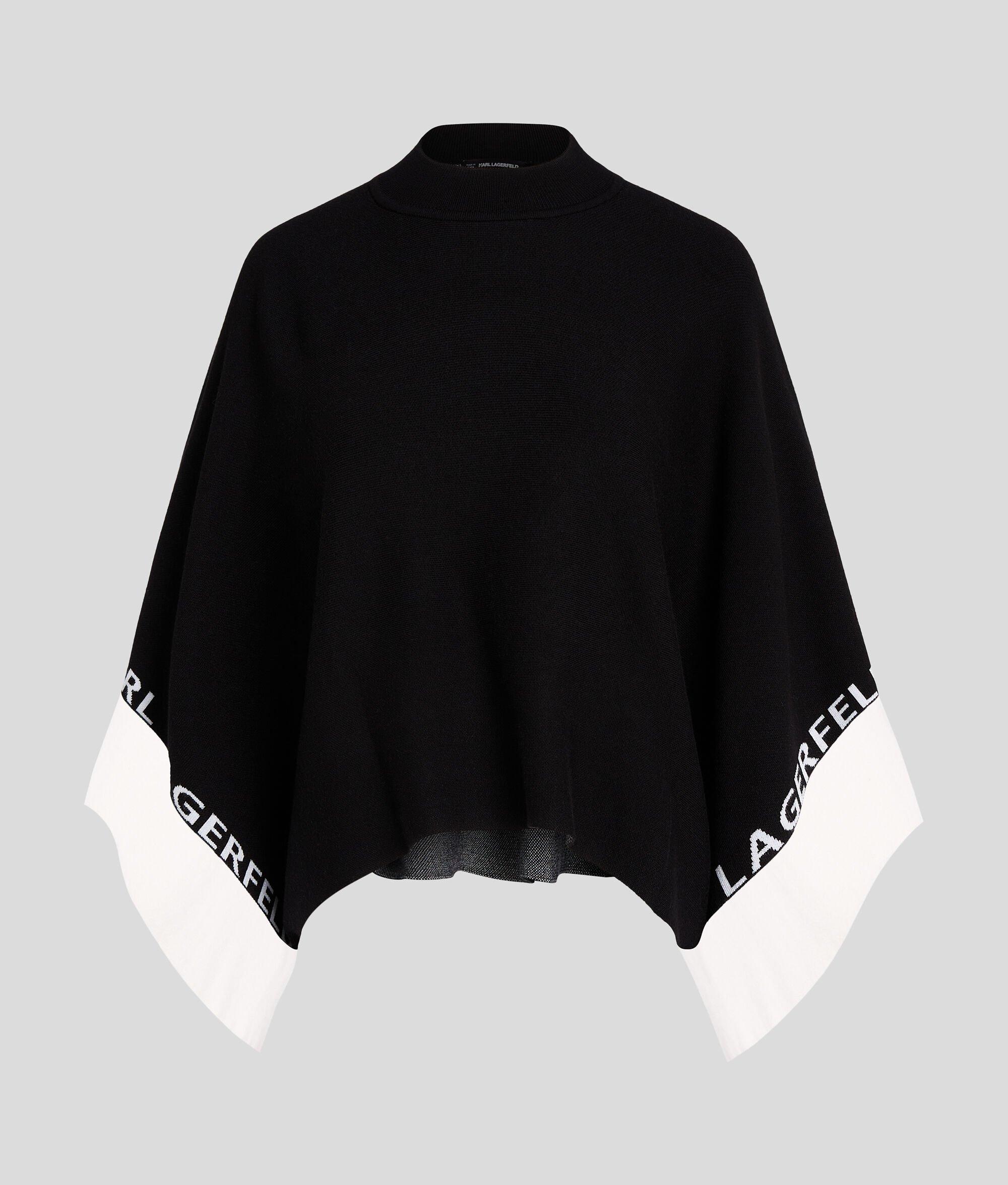 Effortlessly combining comfort and style, this cropped poncho features a monochrome design accented by jacquard KARL LAGERFELD logo tape at the sleeve cuffs.