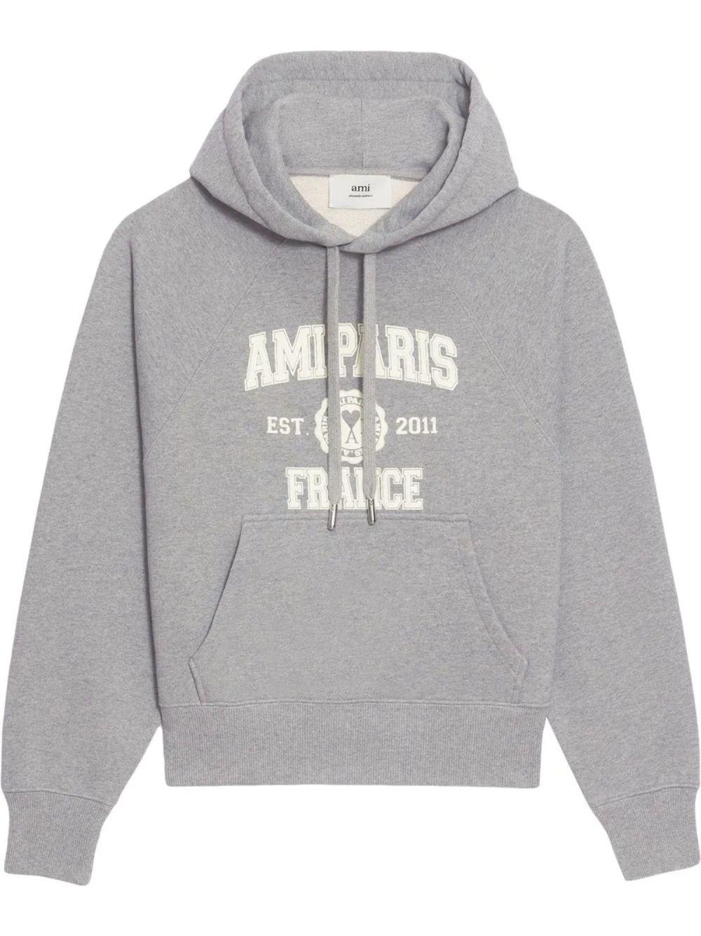 AMI Paris draws inspiration from collegiate styles for this organic cotton hoodie. Logo patches at the front are designed with a varsity font, adding to the piece's casual appeal.