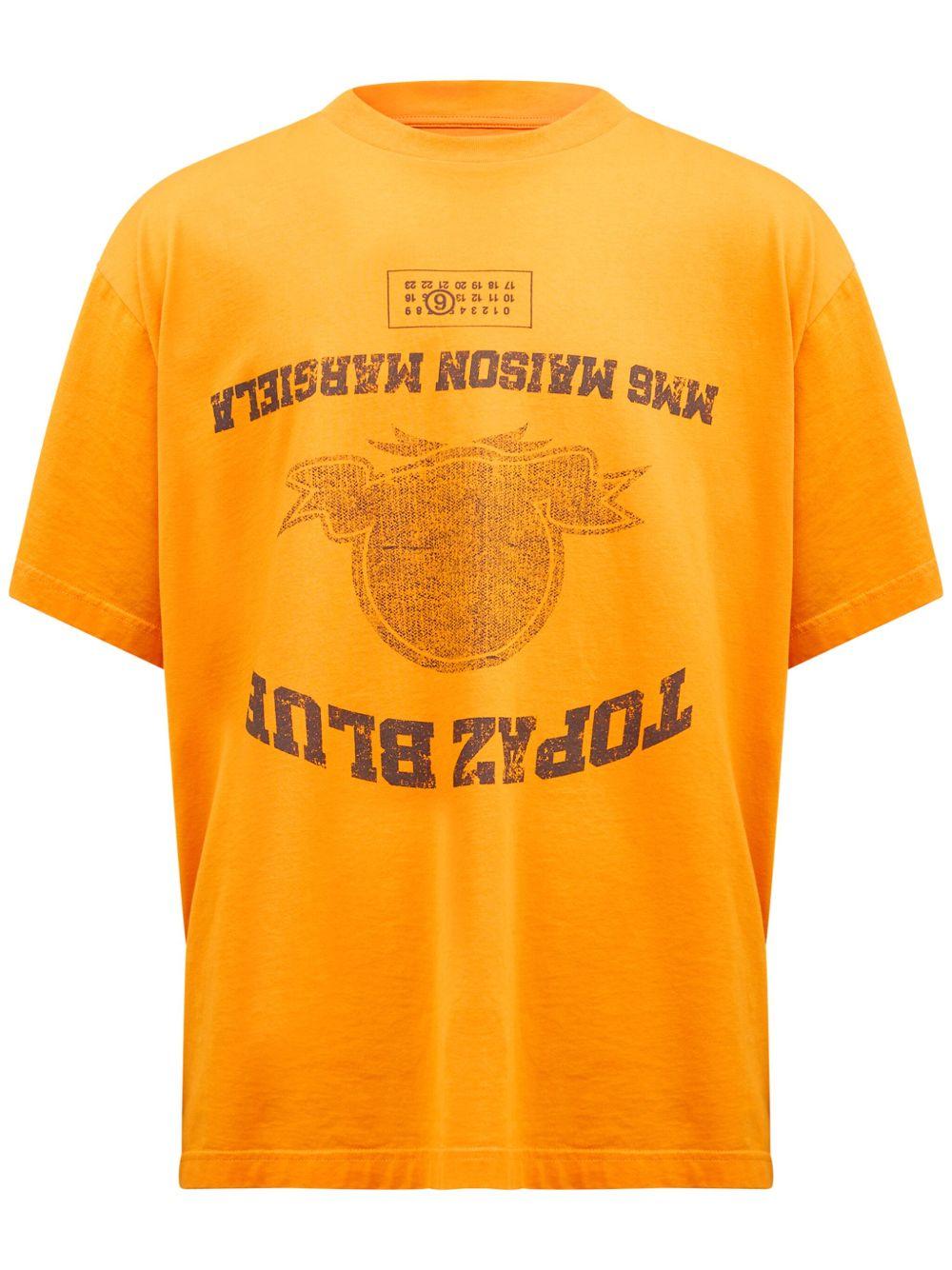 MM6 Maison Margiela logo-print T-shirt | Orange | pumpkin orange | cotton | jersey texture | logo print at the chest | crew neck | short sleeves | straight hem | Cotton | T-Shirts | T-Shirts & Vests | Clothing | Men