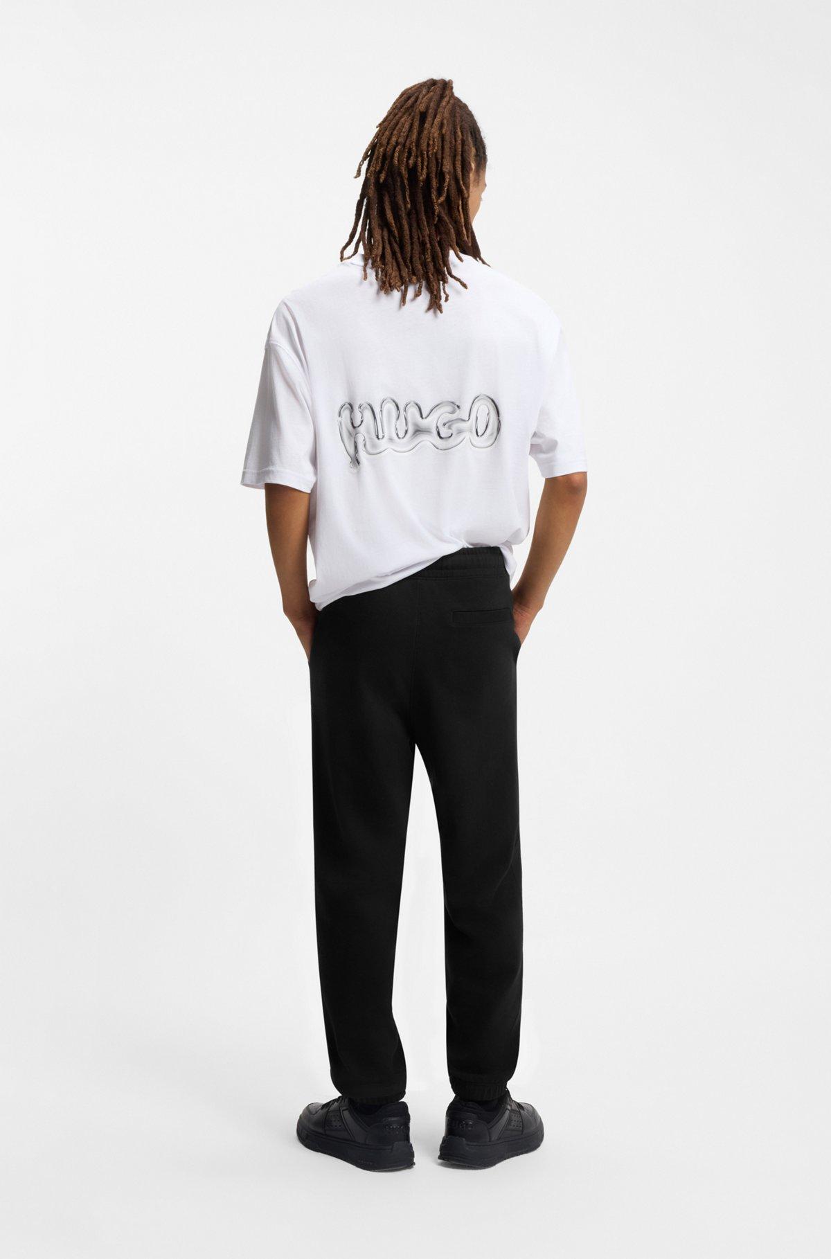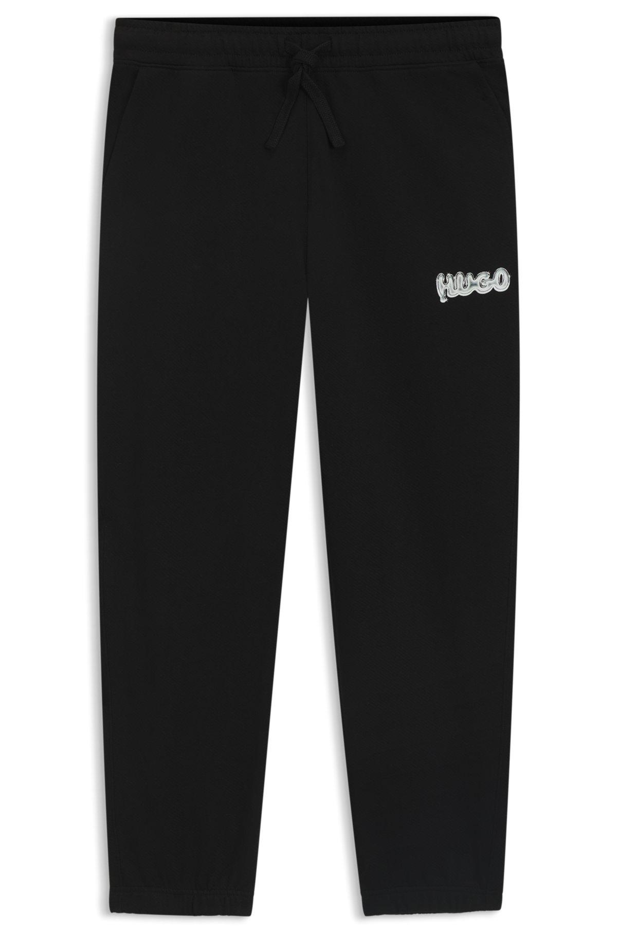 Loose fitting and cuffed, these HUGO Menswear tracksuit bottoms are a casual must. Soft cotton terry. Digitally printed HUGO logo.