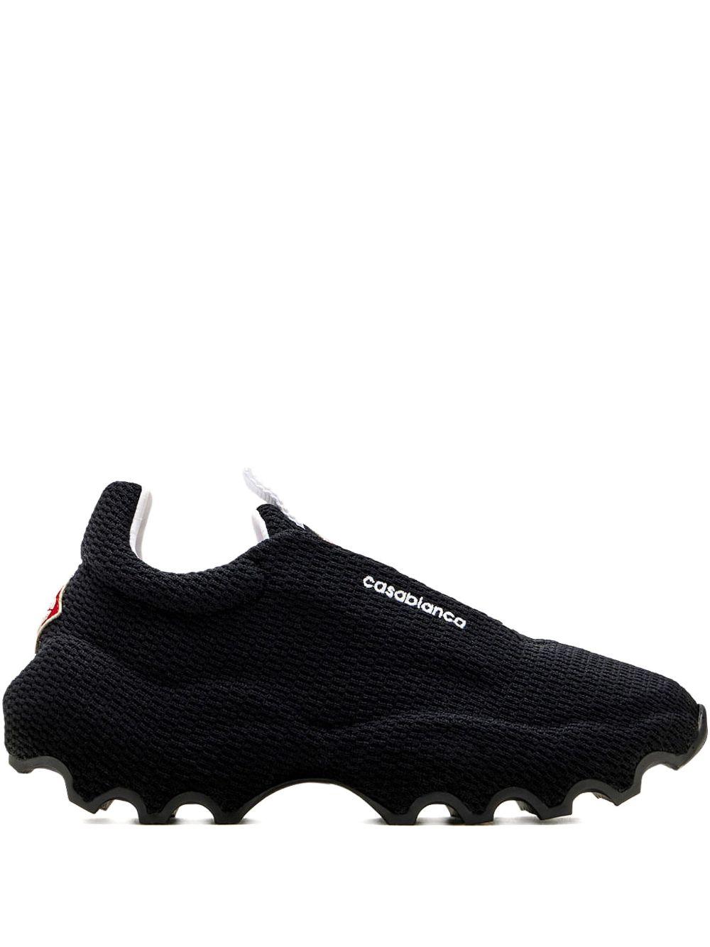 Casablanca logo slip-on sneakers | Black | black | textured upper | logo patch | rubber sole | slip-on design | Rubber/Fabric/Fabric/Suede | Slip-On | Sneakers | Shoes | Men