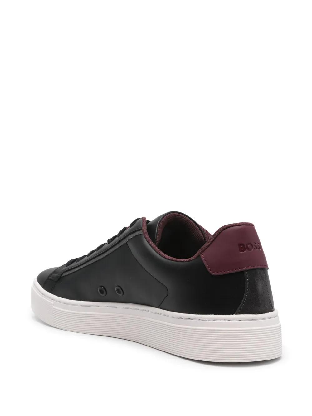 BOSS - Faux-leather trainers with plain and grained textures - Black