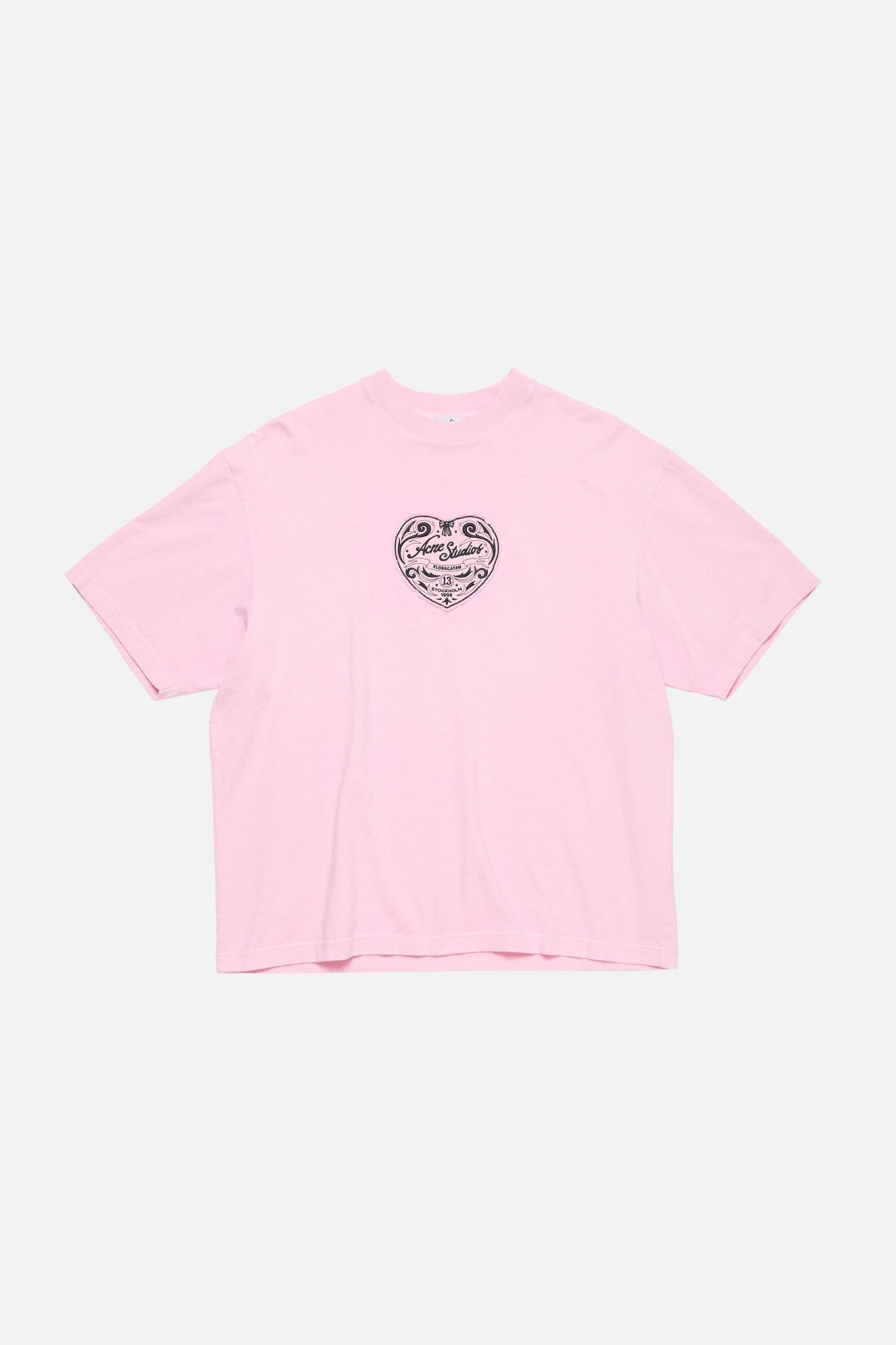 Crewneck short-sleeve T-shirt featuring seasonal heart artwork, crafted from cotton jersey knitted with slub yarn for a subtly textured, vintage-inspired surface. Cut to a relaxed unisex fit and hip length. FN-UX-TSHI000212