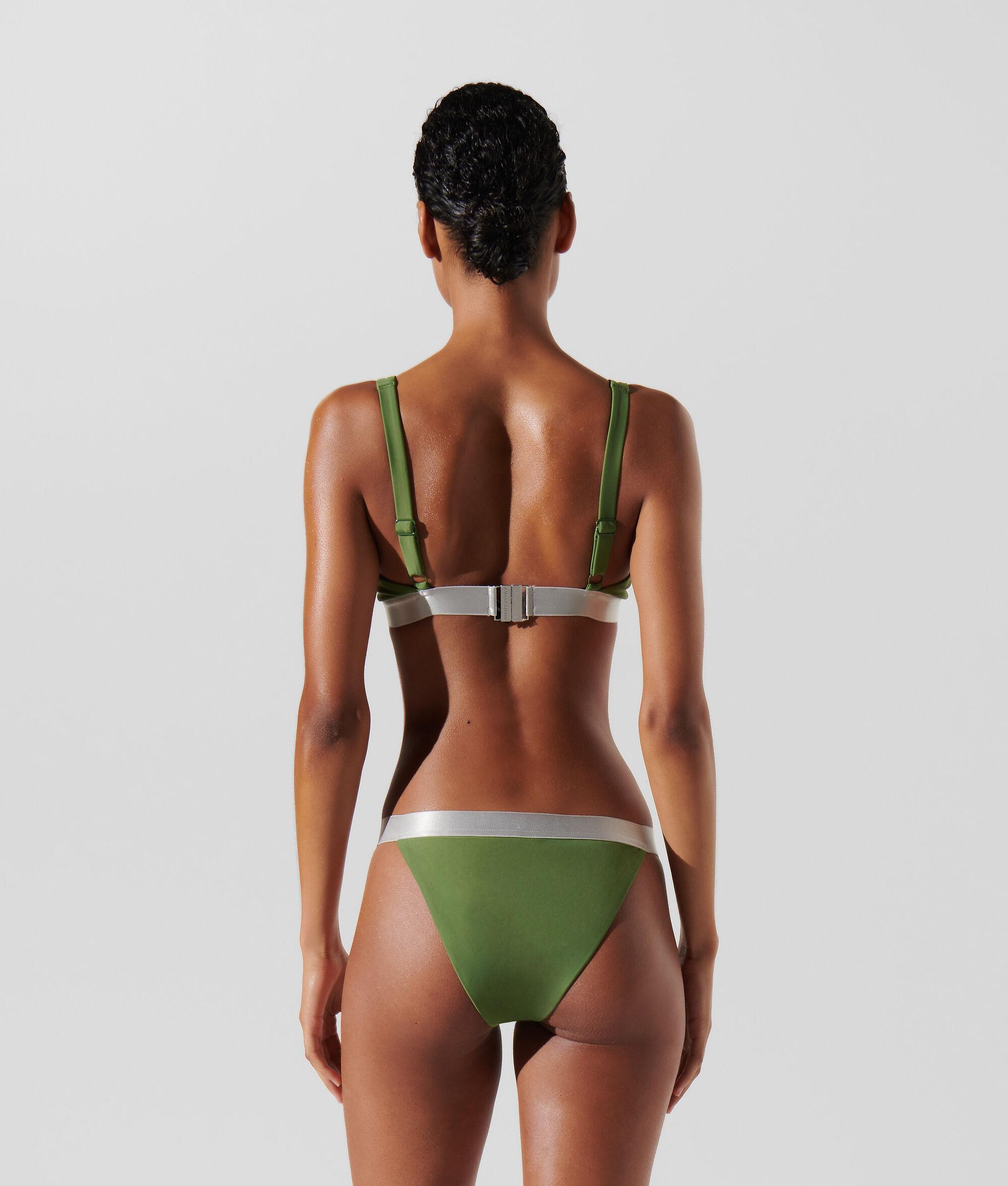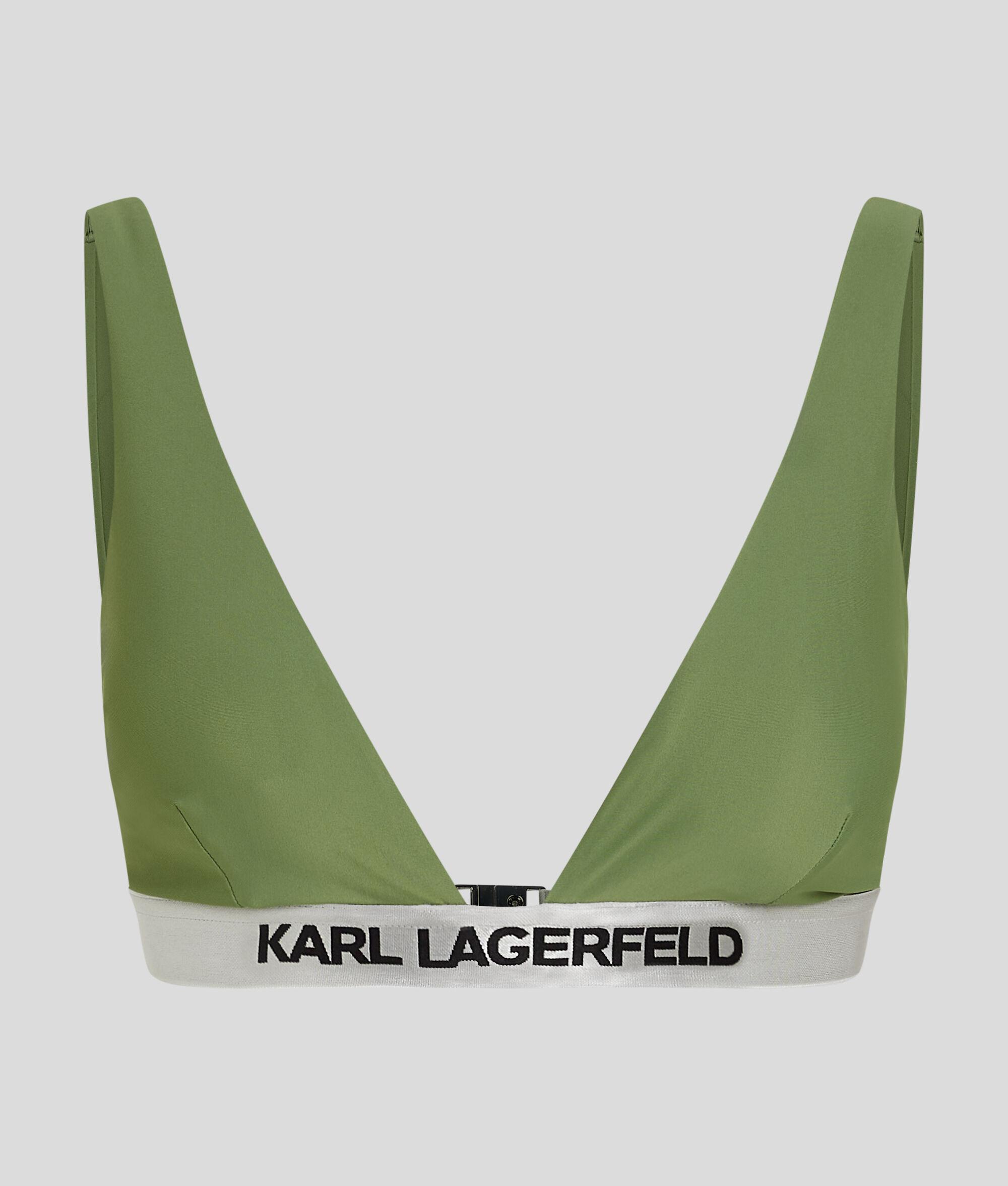 This plunging, triangle bikini top offers a personalized fit through its removable padded cups. Adjustable shoulder straps and a secure clasp closure ensure added comfort, while the logo-enriched chest band brings a touch of KARL exclusivity.