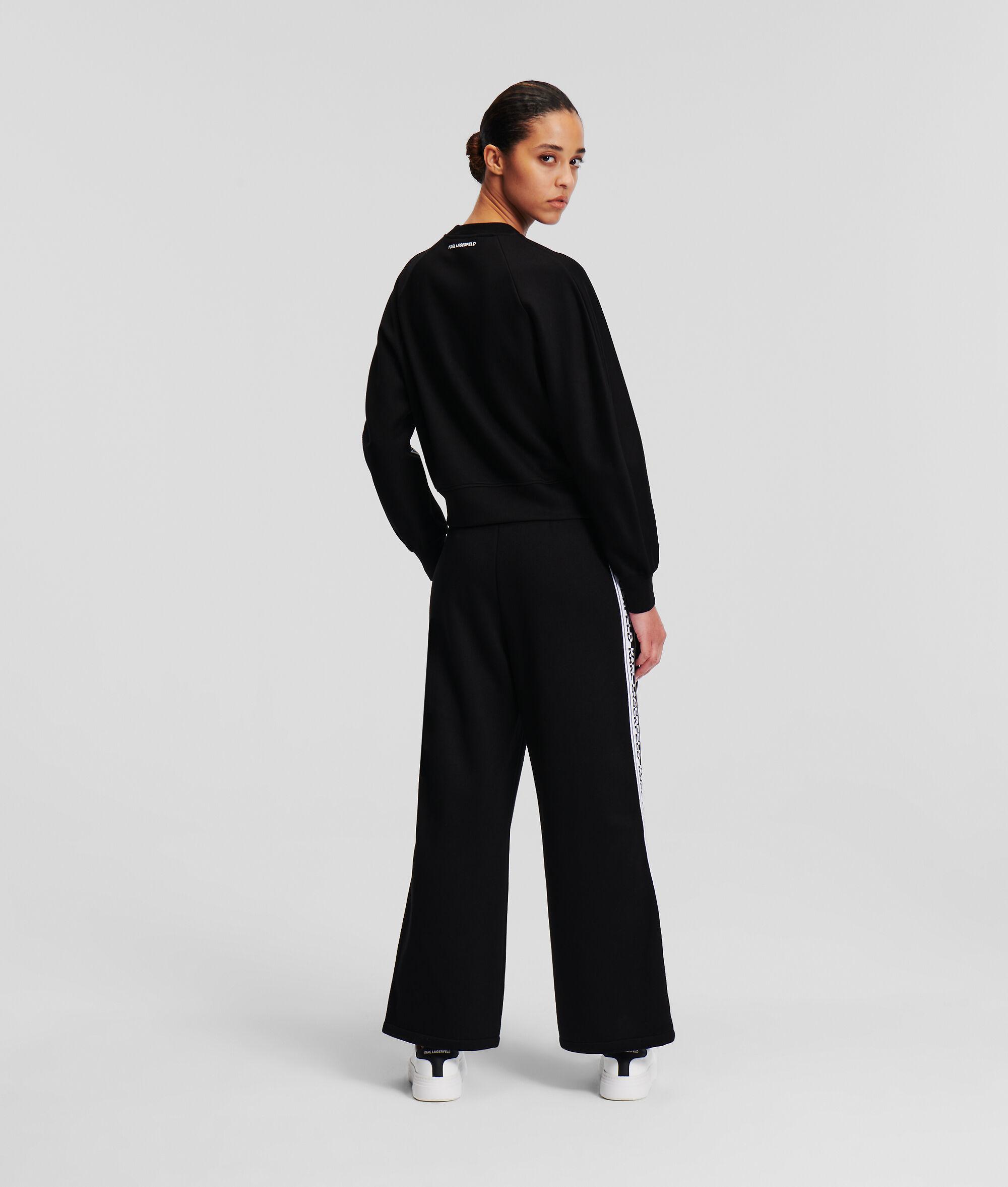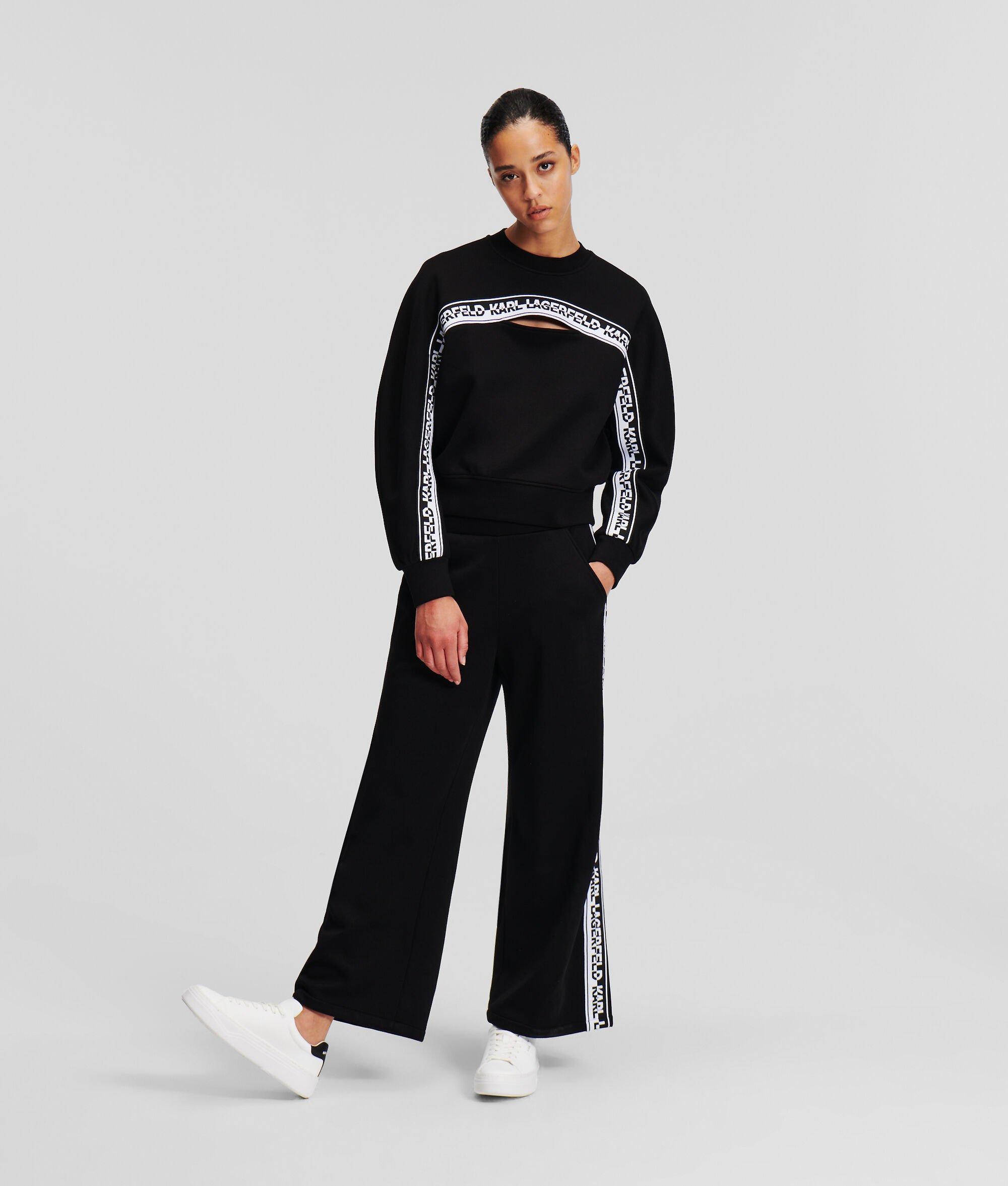 Perfect for a cosmopolitan, day-to-night look, these wide-leg culottes are adorned with statement KARL logo tape. The modern wardrobe essentials offer effortless comfort with an elasticated waistband and essential practicality with functional hip pockets.