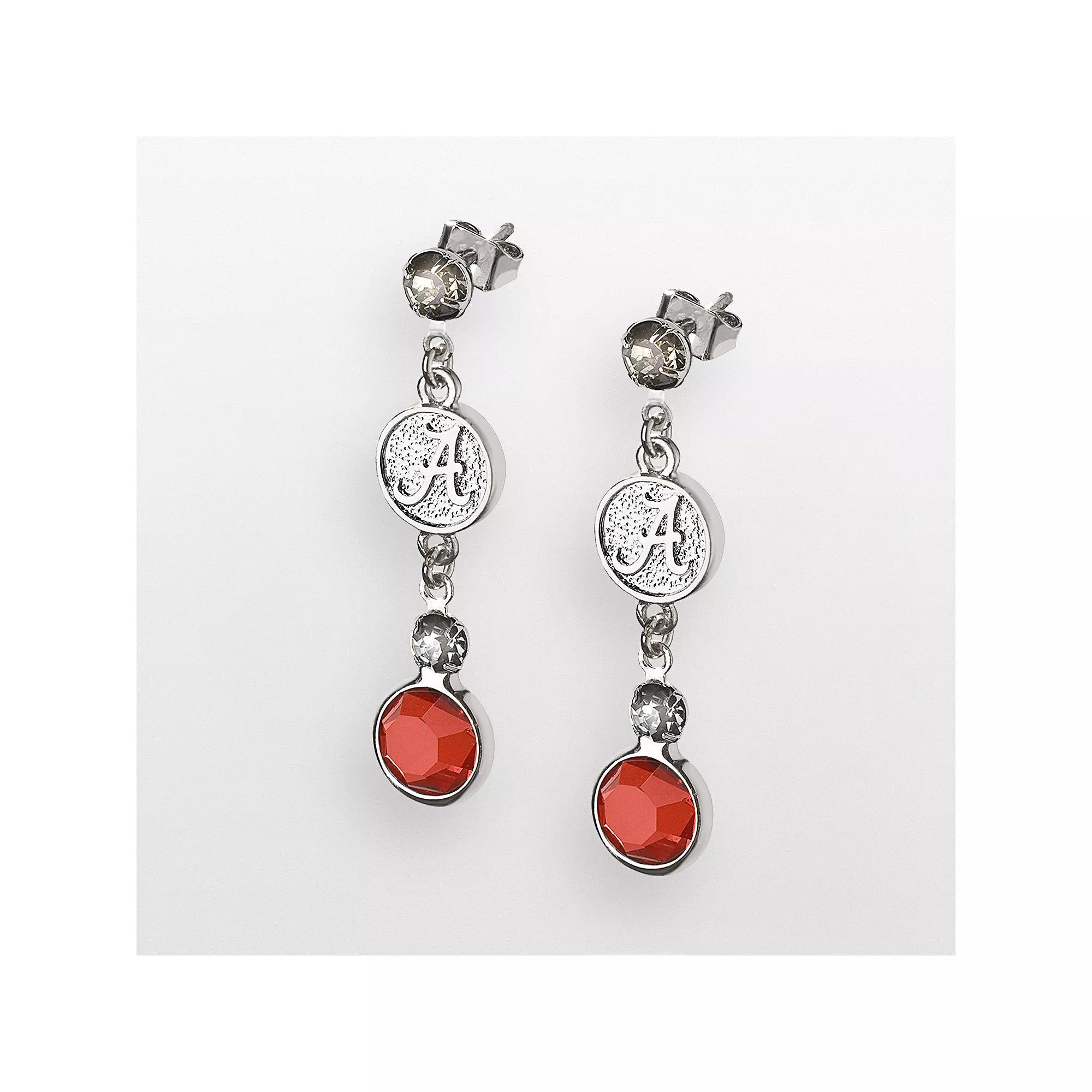 LogoArt Alabama Crimson Tide Silver Tone Crystal Logo Linear Drop Earrings, Women's