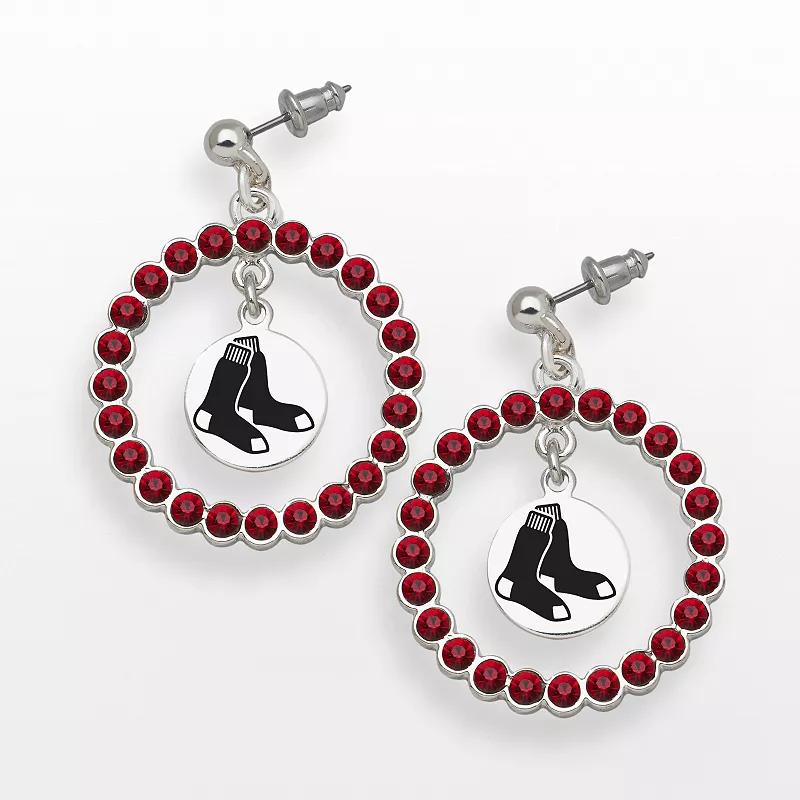 Earring Details: Length: 1.06-in. Backings: post Metal: silver tone Features: dangling logo charms with black enamel Model no. RSO067ER-CR Crystal Details: Cut: round Color: red Setting: bezel Size: One Size. Gender: female. Age Group: adult.