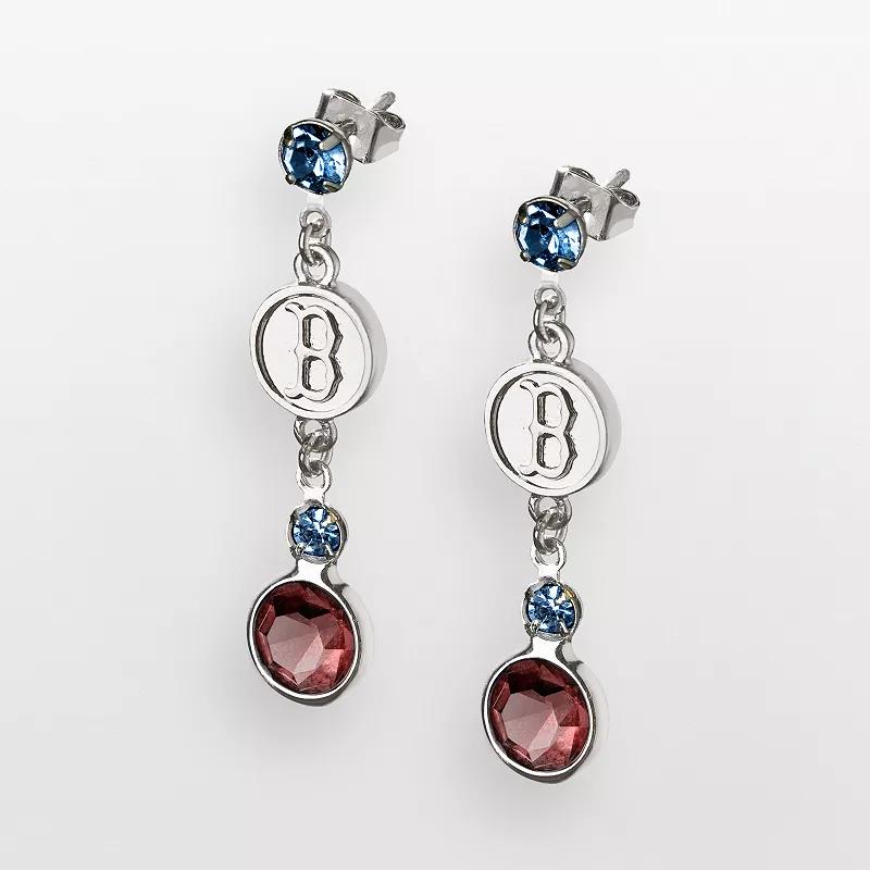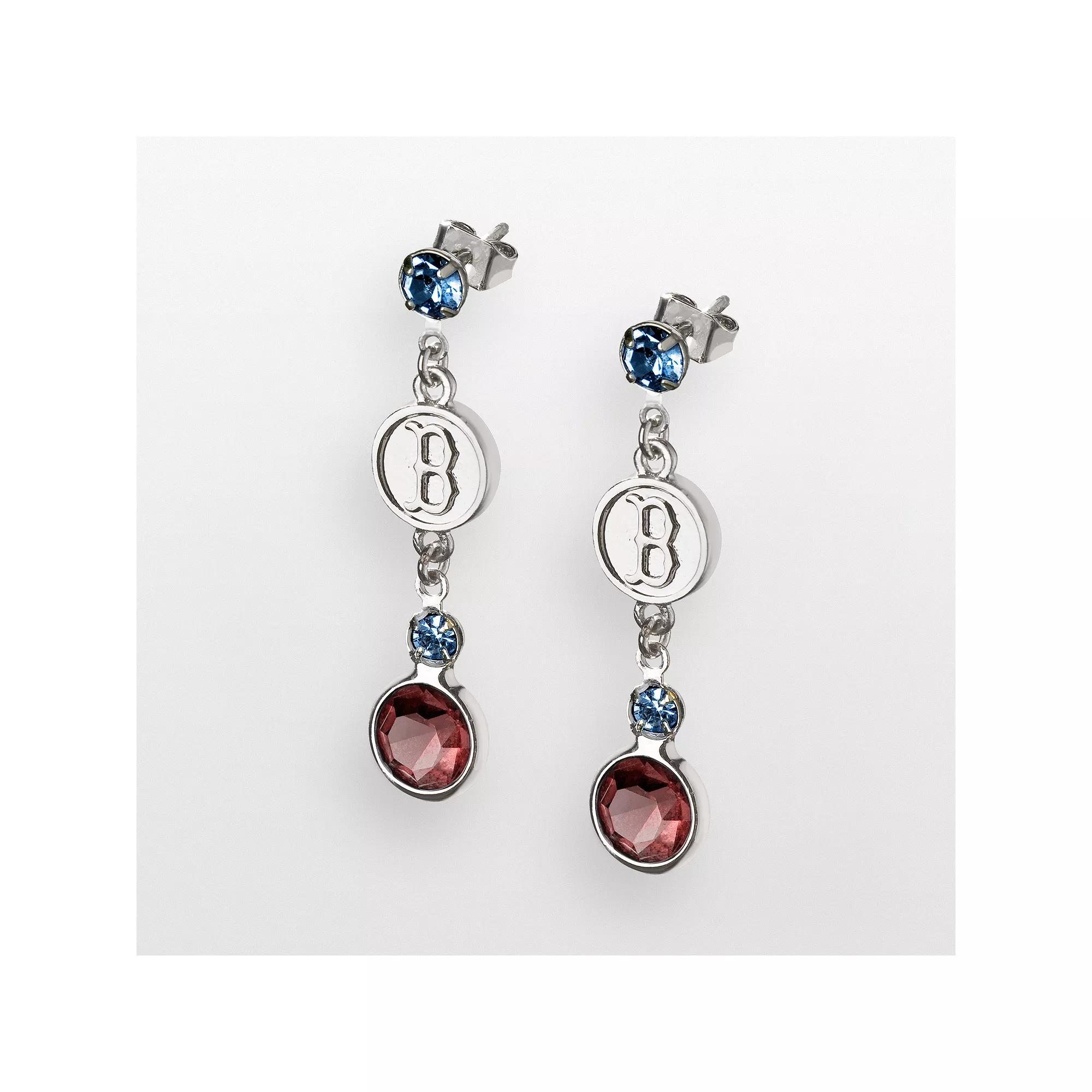 LogoArt Boston Red Sox Silver Tone Crystal Logo Linear Drop Earrings, Womens, Multicolor