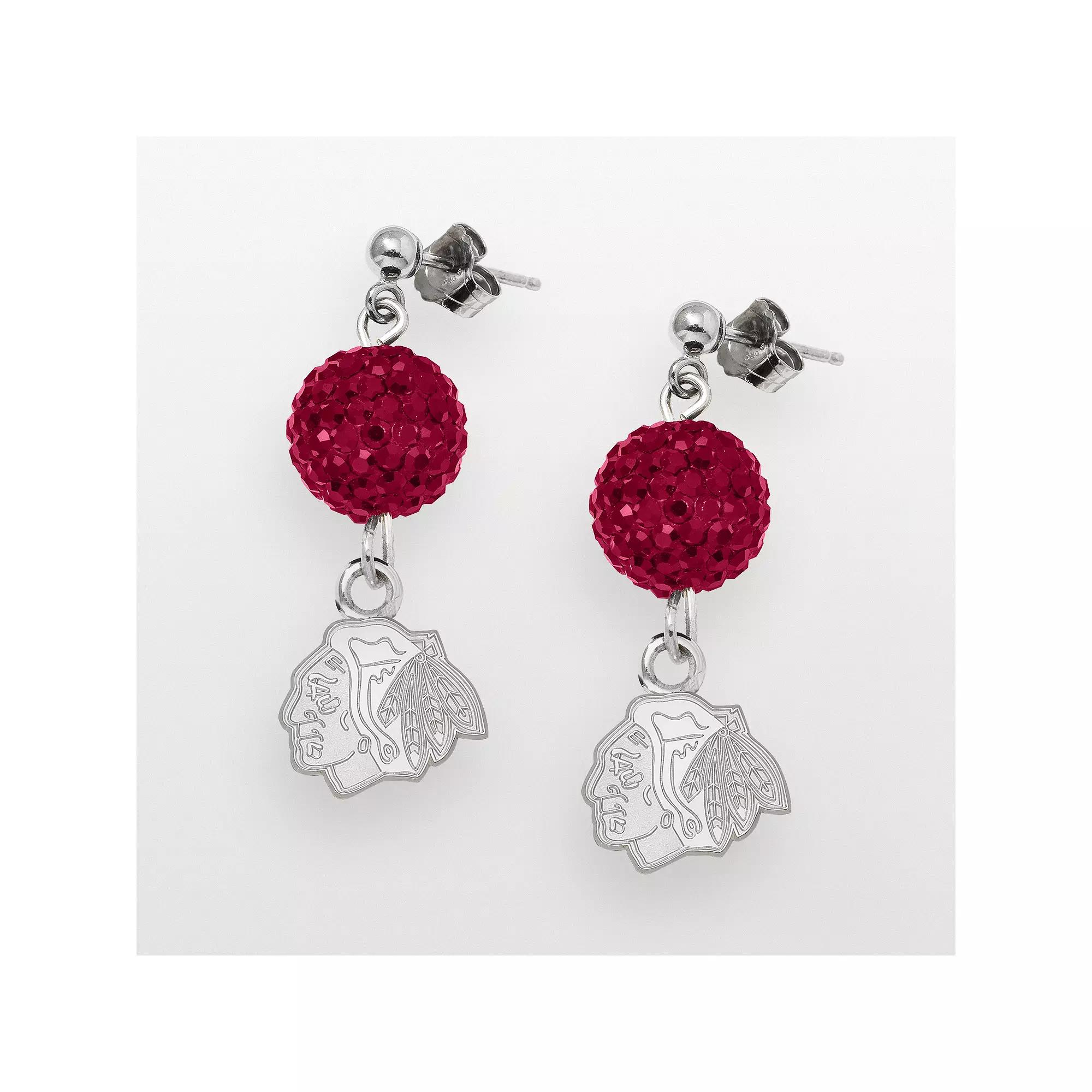 Team logo charms dangle from the balls for official appeal. Earrings come in a gift box. Details: 1 3/8-in. length Pierced Post backings Rhodium-plated sterling silver Model no. BLA069ERB-SS Size: One Size. Color: Red. Gender: female. Age Group: adult.