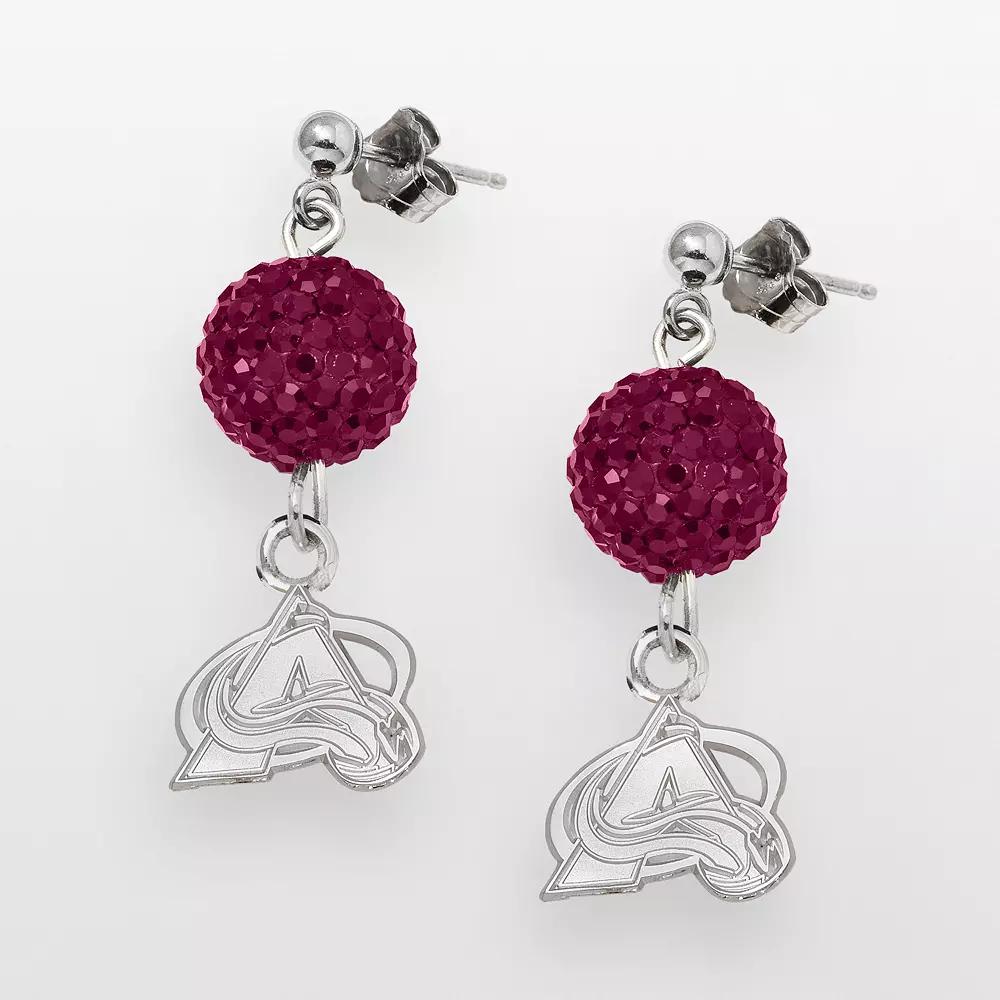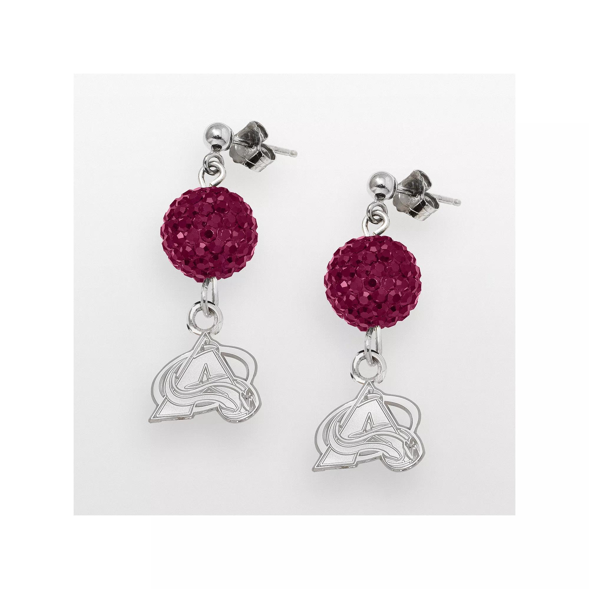 Team logo charms dangle from the balls for official appeal. Earrings come in a gift box. Details: 1 1/4-in. length Pierced Post backings Rhodium-plated sterling silver Model no. AVA069ERB-SS Size: One Size. Color: Red. Gender: female. Age Group: adult.