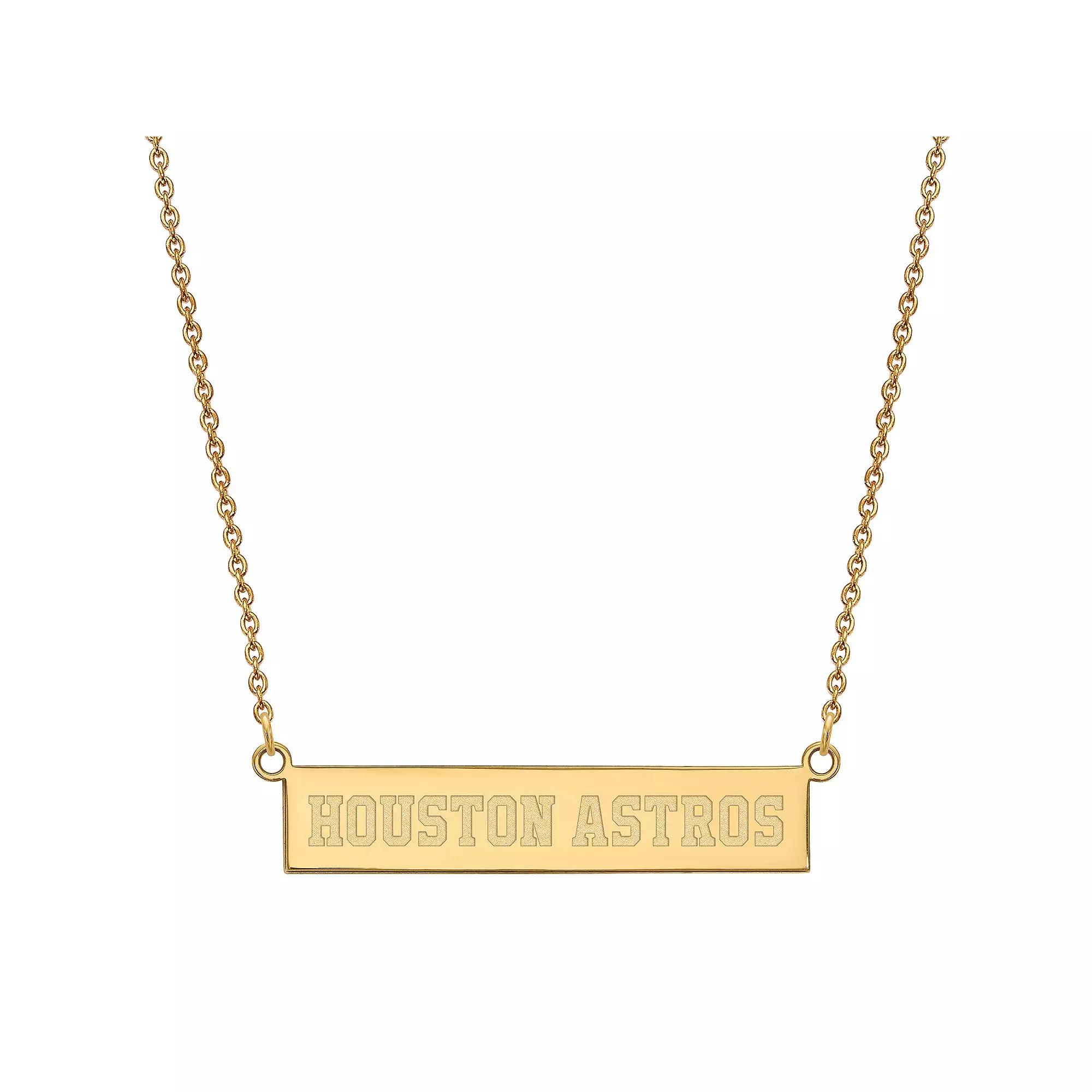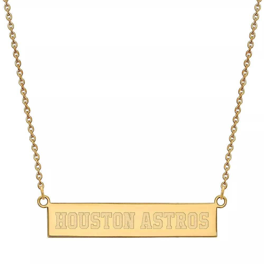 Show off your team spirit with this Houston Astros bar link necklace from LogoArt. Show off your team spirit with this Houston Astros bar link necklace from LogoArt. Bar link size: 36 mm x 7 mm Chain length: 18 in. Clasp: lobster-claw Chain type: cable Metal: sterling silver Plating: rhodium, 14k gold Finish: polished Nickel free Packaging: boxed Officially Licensed Size: One Size. Gender: female. Age Group: adult.