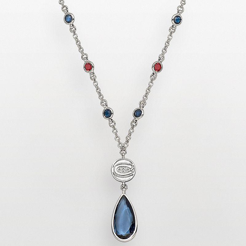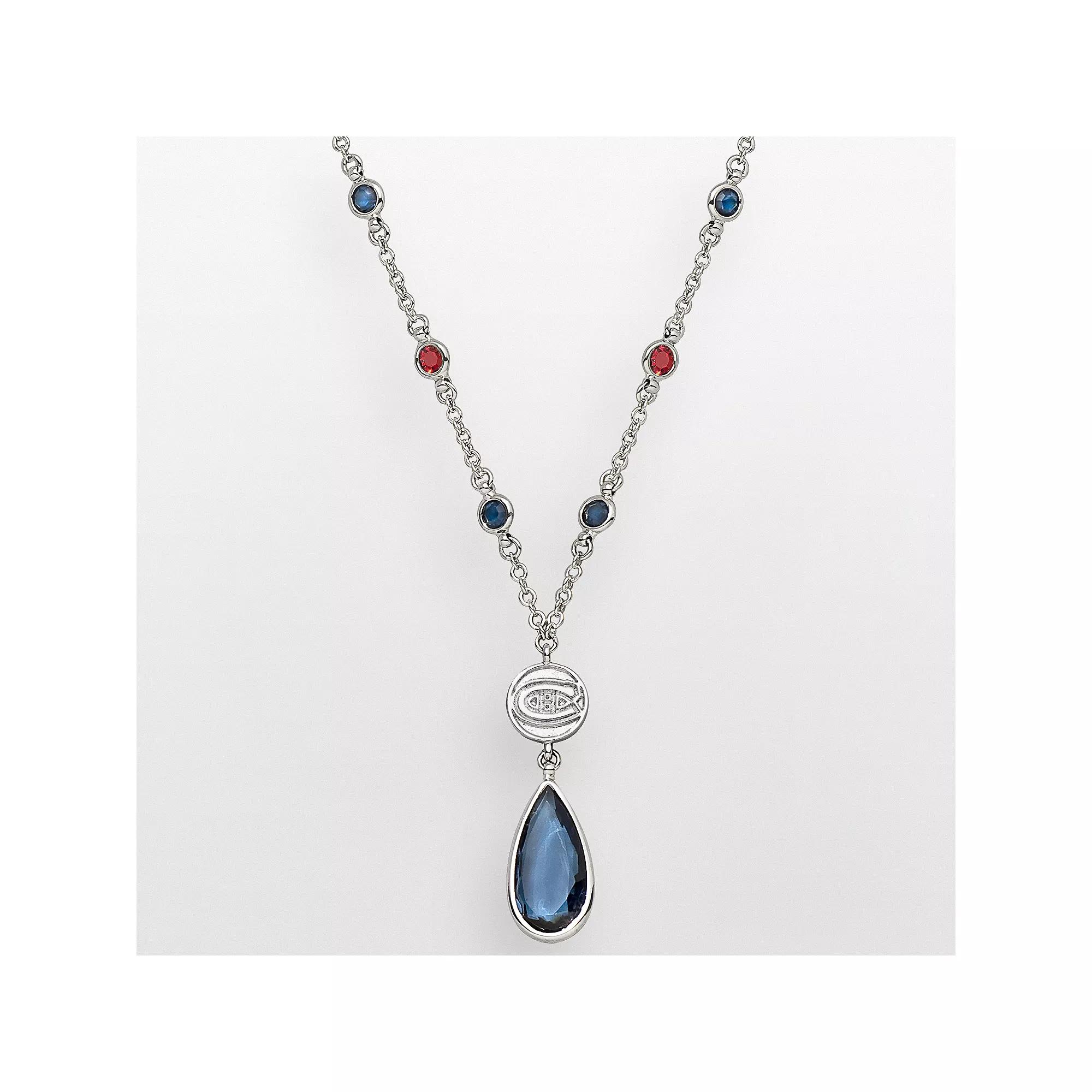Round-cut, pear-cut and bezel-set crystals display your team colors in style. Necklace comes in a gift box. Details: 1 7/16-in. drop 18-in. necklace with 2-in. extender Adjustable lobster-claw clasp Silver tone Size: One Size. Color: Multicolor. Gender: female. Age Group: adult.