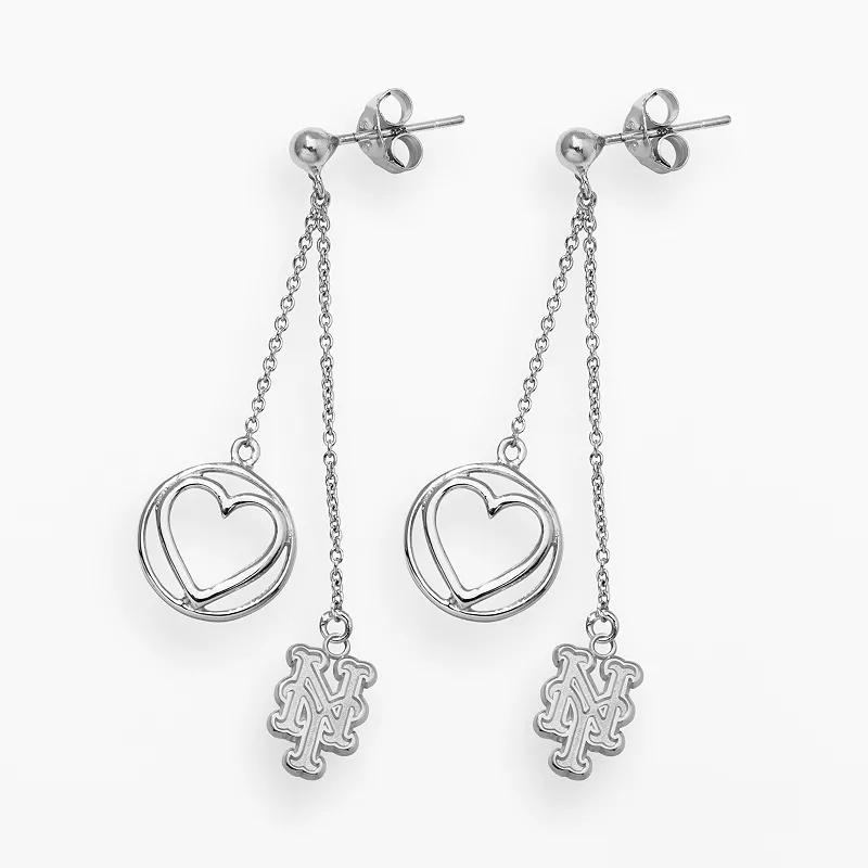 Earring Details: Length: 2 in. Backings: post Metal: rhodium-plated sterling silver Features: New York Mets logo & heart charms Model no. MET005BLERD-SS Size: One Size. Color: Grey. Gender: female. Age Group: adult.